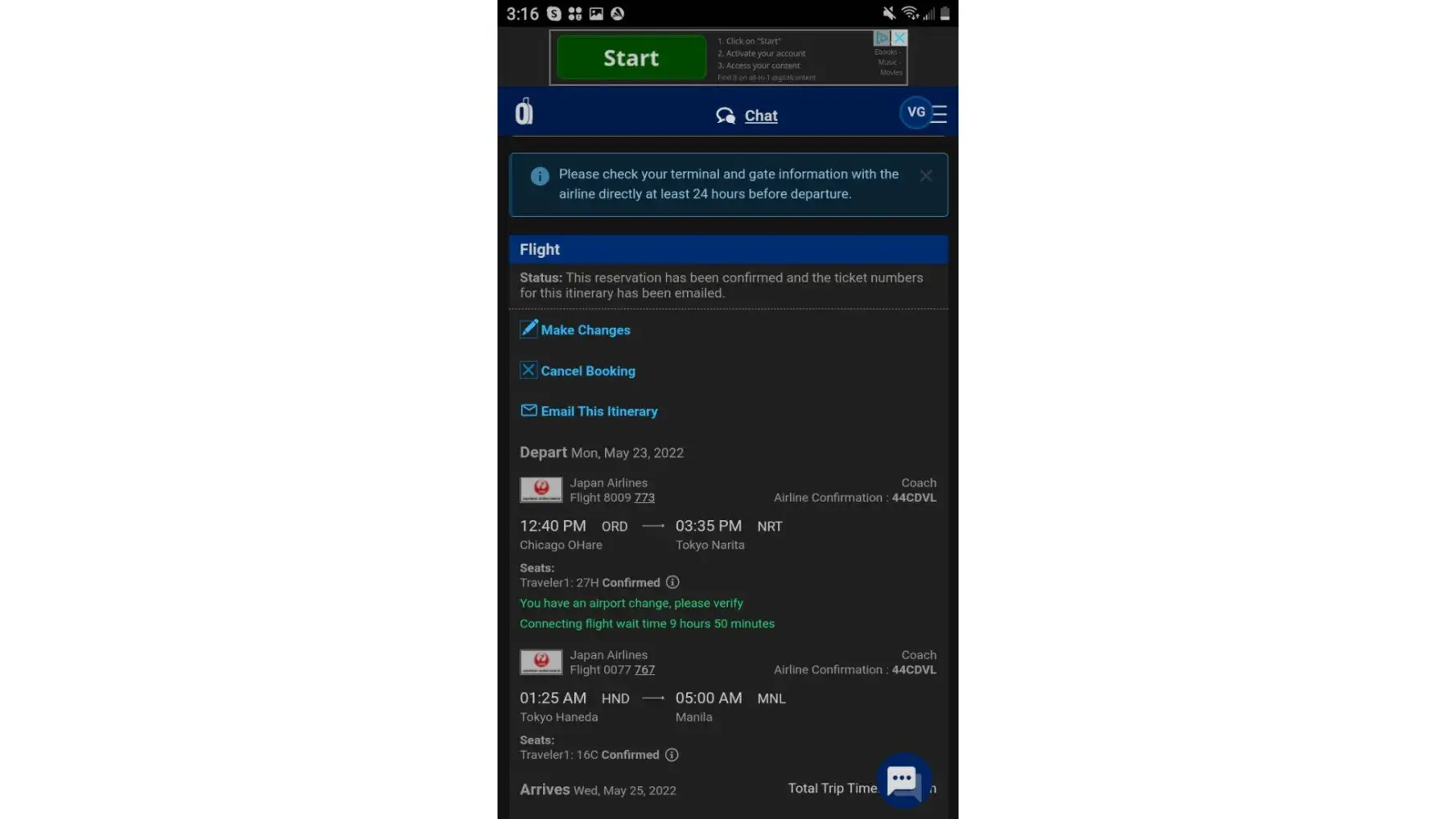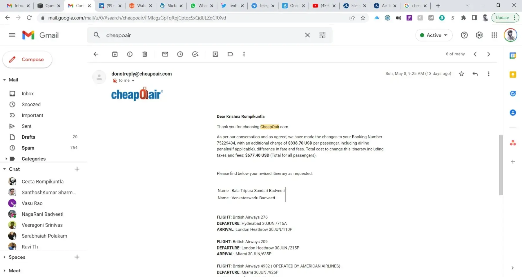 But till date I have not received confirmation from the airline on this reschedule and CheapOair is not responding.