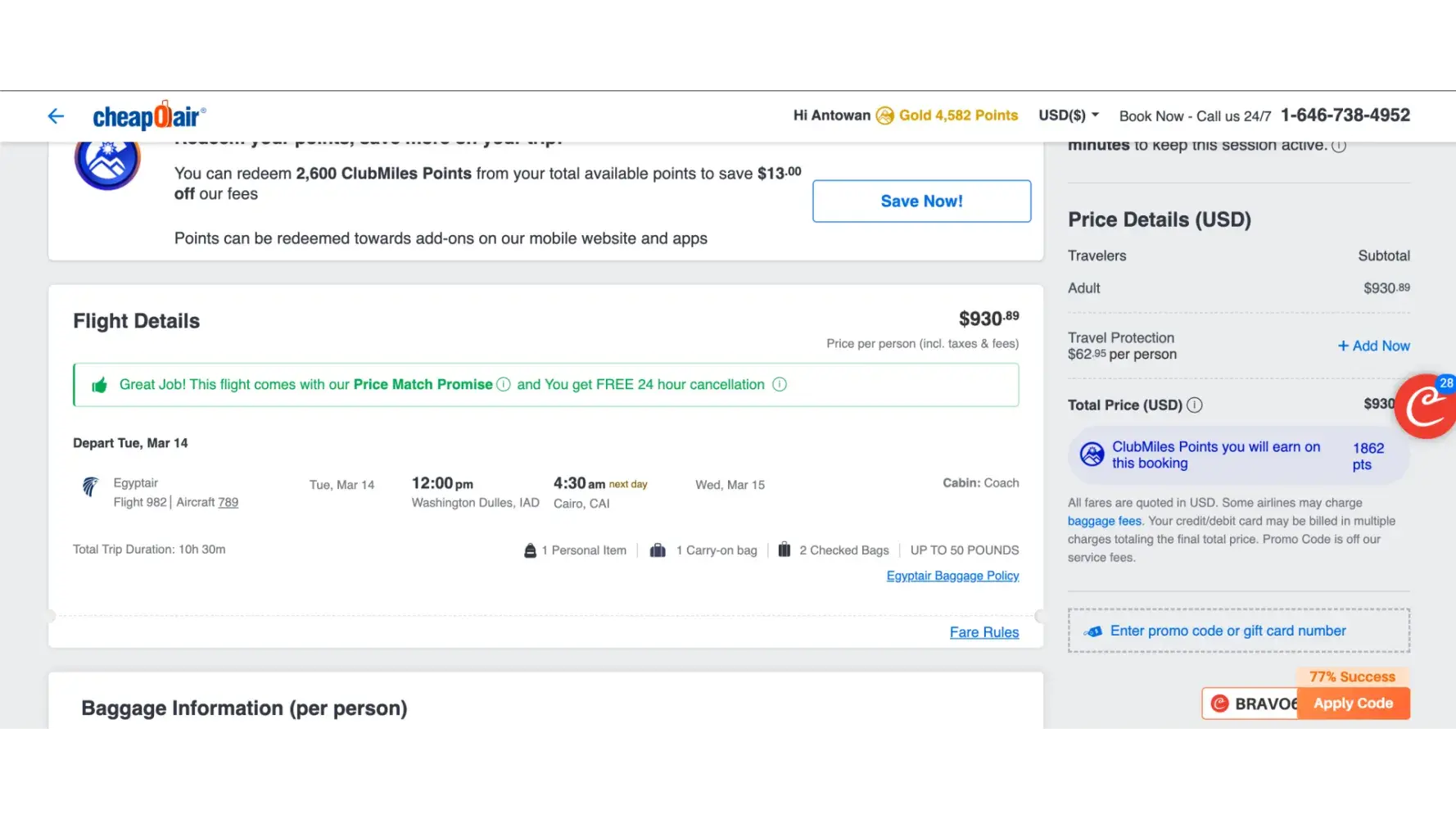 CheapOAir is a rip off. They claim to have a low price guarantee and I trusted them. Big mistake. Not only did I immediately find the exact same flight for $40 cheaper on Expedia, but CheapOAir refused to honor their low price guarantee. What they do is give you a low fare and then load it up with a excessively high fees right before you checkout. Total scam!