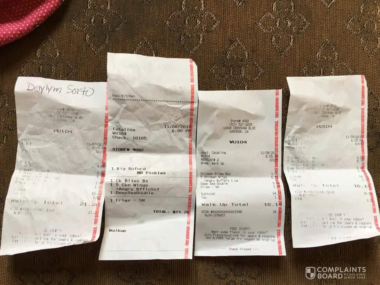 Hello, last night we went to rally's with my kids, we take first time signing coupon one burger free with any other purchase we purchase three more combo, employee name catalina who helping us she trying to changing price one burger because our coupon but she can't fixed than she call manager name daylym sorto she charge my card $21.26 after I check my recipe she did not change any price so I told her about wrong charge she's going to fixed now than she give me new recipes $16.14 charge on my card, now this morning i'm checking my account rally's charge $21.26. Please check for me and let me know how I can get back my refund and below all my and store info. I really appreciate some one take care this issue, thank you store#4092 address 14306 crenshaw blvd. Gardena, ca tel: [protected] tran auth#076457 date 11-08-17 time 6:05pm wu #104 my info# nathan absar email:[protected]@gmail.com