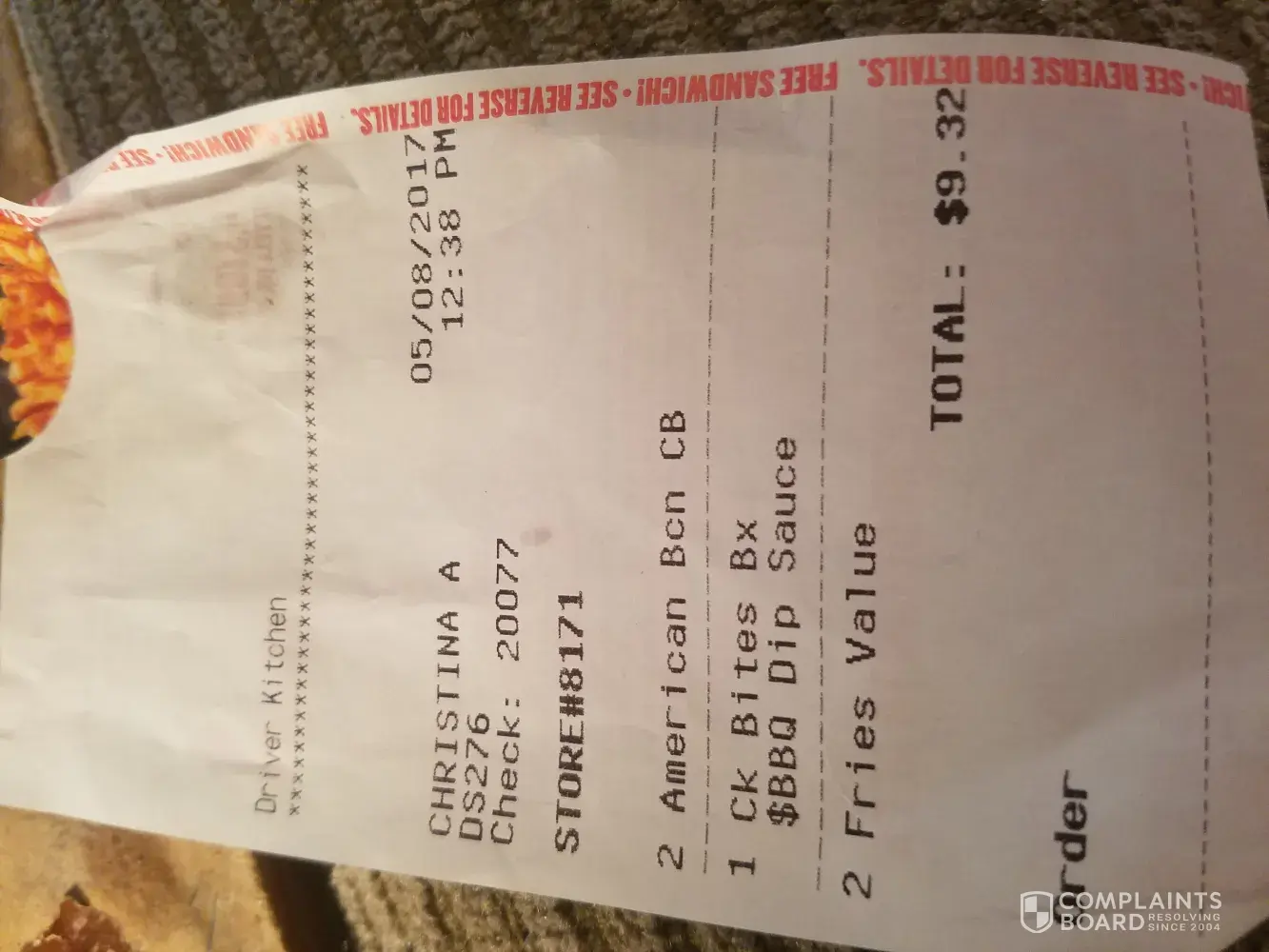I went to jacksonville Arkansas store an ordered. 2 all American bacon cheese burgers, 2 value fries, an a chicken bites box .. i only recived 2 regular burgers ( ketchup, mustard, an pickle) an a chicken box.. i paid $10 for 2 $1 burgers an a $2 chicken box! Thats $4 plus tax an i live 10 miles from this resturant! So pissed off my check num is 20077 store # 8171 Christina a server an this number idk. Ds276.. pissed momma!
