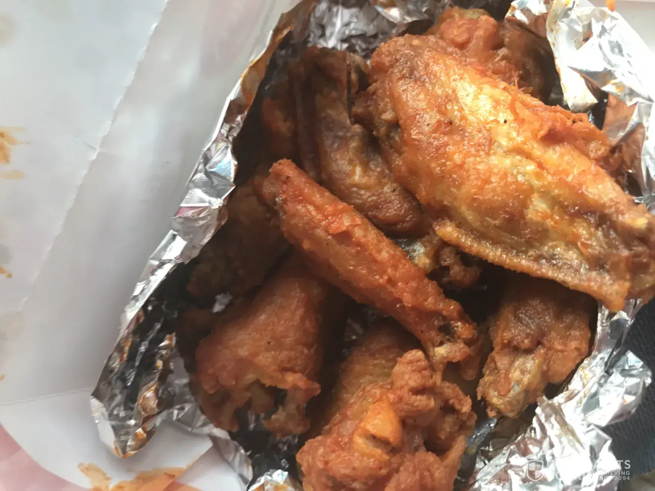 When I got home and proceeded to unpack my food the chicken box was dumped inside the bag, not in the box.