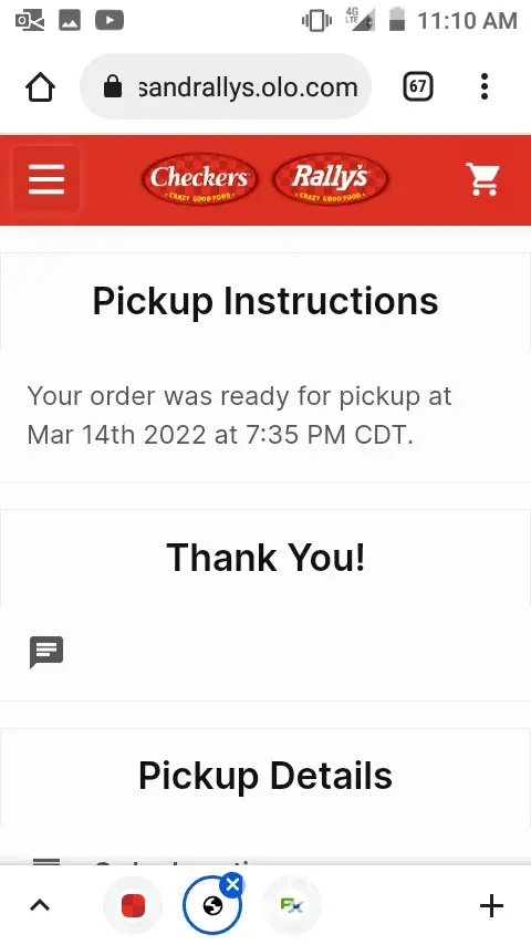 Visited Rally's for dinner at around 3:25 p.m. 3/19/2022. Service was bad. Lady was extremely grouchy. Ordered two Fish sandwiches (doubles) a Spicy Chicken, Garlic Parmesan Fries, Reg.Fries, two Funnel Fries, Chocolate Milkshake, Cheesecake Sundae.