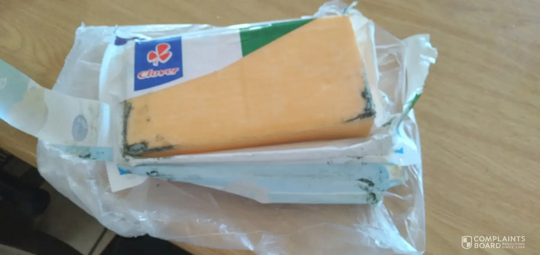 Bought a 800 g block of cheddar cheese and it was full of black mould. Very inconvenienced as I had people over for dinner and had to go out and buy more cheese. Very disappointed. Have always been very satisfied with clover products so was quite shocked