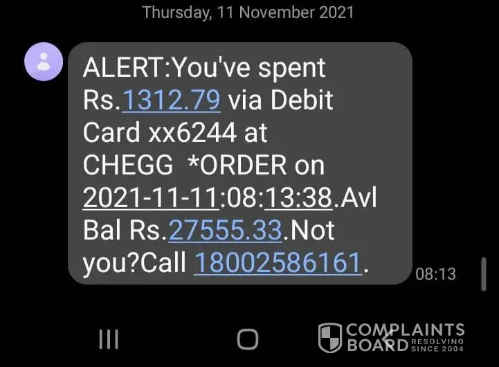 CHEGG ORDER [protected] CA Date 11/16/21 2 [protected] 2 5942 Card 1052/Recurring Withdrawal Debit Card