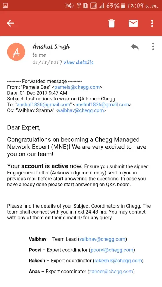 My self Anshul Singh i was worked in chegg india pvt ltd as chegg expert (ME) from last two months.