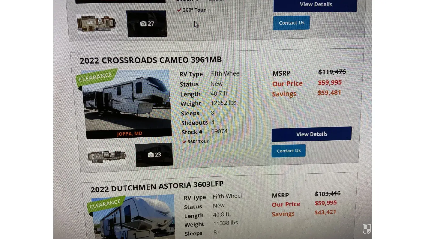 On Saturday, May 13 2023 I called Chesaco multiple times (11:28am, 1:43 pm and 2:21pm) inquiring about stock #09074 Factory New 2022 Crossroads Cameo 3961MB 5th wheel. Sale price $59,995. I talked to Lance Davison. I asked Mr Davison to send me a proposal for the unit with some added options. He expressed a customer was on the way to the show room to look at the same unit. He said if they didn't buy it he would send me the pricing. I did not want this unit sold out from under me so I place a deposit on Chesaco's website for the unit and followed it up with a call to Lance Davison. I explained to him that I made the deposit because I wanted to complete the deal before the other customer view the unit. At that point Chesaco did not have a commitment nor a deposit from this potential customer. The deposit and call to Lance occurred at 2:21 pm Saturday, May 13th. Lance responded that he would prepare my ales contract later that day and email it. Again, the other potential customer had not arrived to view the unit at this point. The sales contract never arrived in my email box. I called their office later in the day and they had closed. On Monday morning I sent a text that my documents had not yet arrived. Lance called a little later and expressed that he in fact sold the unit to the other customer after he was full aware and confirmed I had made the deposit. Chesaco phone systems state every time you call there that the call is being recorded. I invited both Lance and his manager to listen to the call and understand they had already sold the unit to me BEFORE the potential customer arrived. They both refused to retrieve and listen to the call because they knew they had done something borderline illegal and unethical. I have attached a copy of the ad and a copy of my Paypal receipt confirming my deposit to Chesaco and a screen shot of the calls to Chesaco and a copy of Chesaco deposit parameters from their website. It clearly states that they have the right to make final decisions to hold vehicles receiving multiple deposits "at the same time". I processed and phoned to confirm with Lance my deposit was the only deposit they had at that time. Any other deposits they took were at a later time.