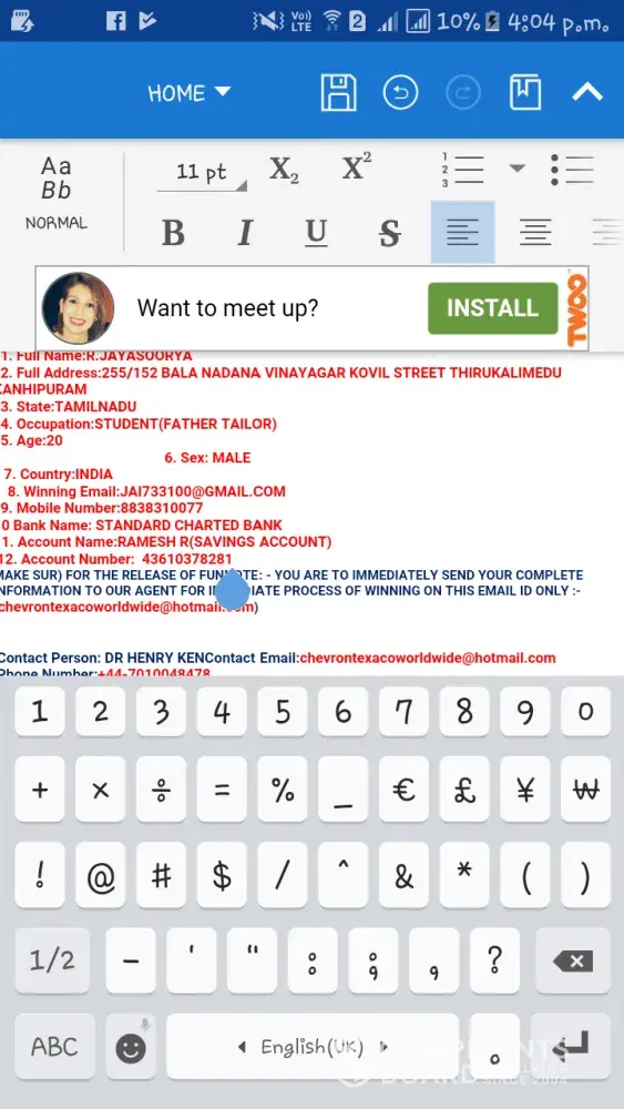 I too got the same email i knew its a fake one but my only fear is that i sent my bank account number to that guy through sms to the number ( [protected] ) plz tel me its possible to hack my money or not