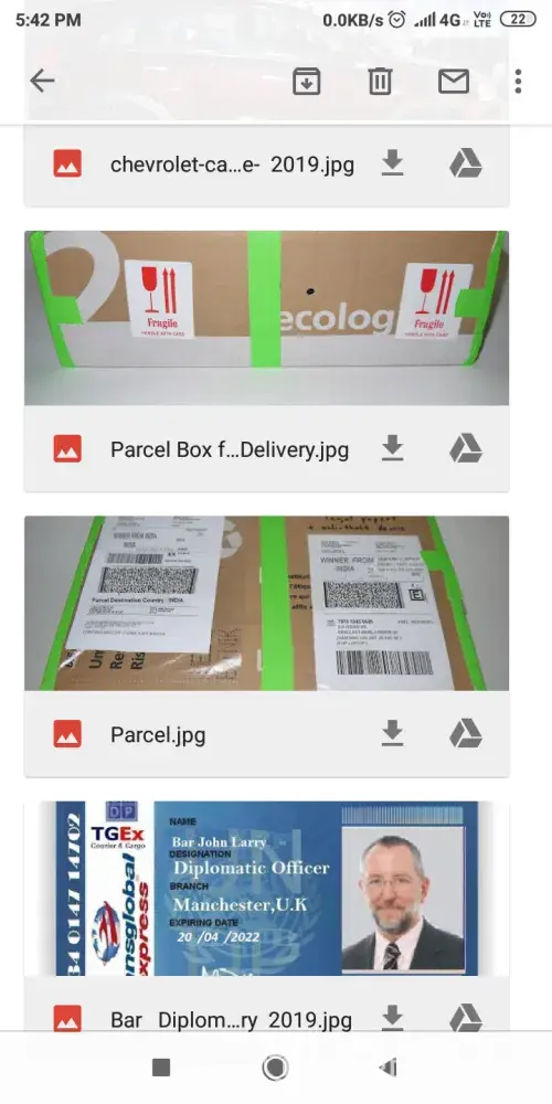 We received and have noted your delivery address sent to us. This is to bring to your notice that you will be receiving your parcel in India, this office will be sending a diplomat from UK to India for your delivery, Our delivery Diplomat by name, Diplomat Thompson Samson will be leaving from England and will arrive your country on Monday morning 25/02/2013 in INDIA