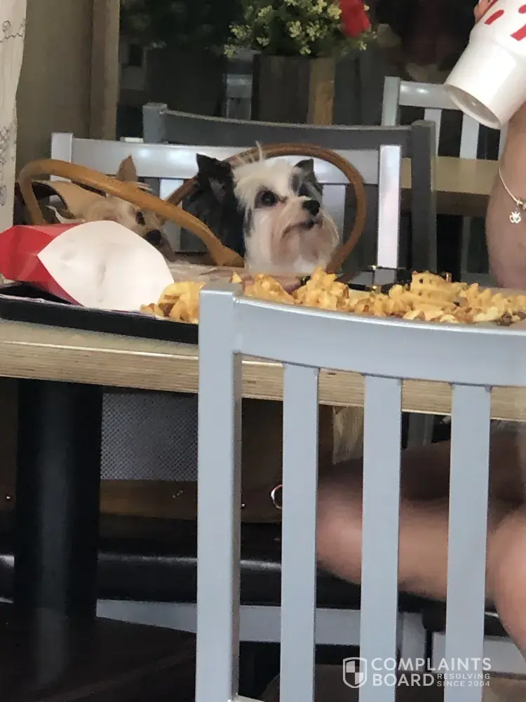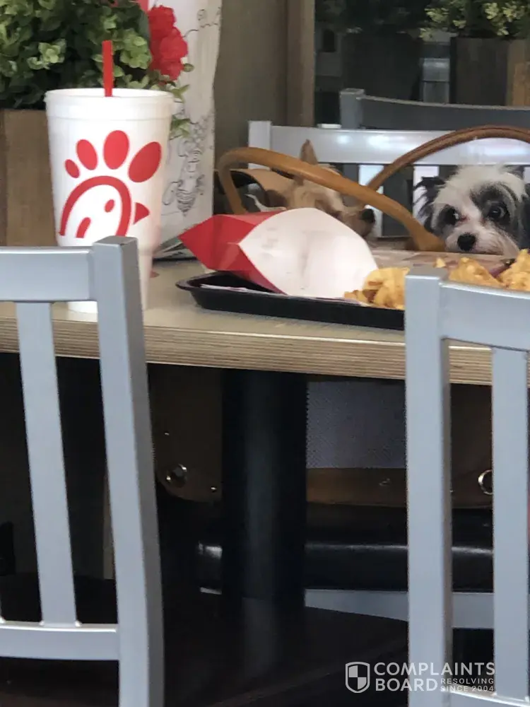 This was at the Evans Chick-Fil-A today. I'm tired of people treating their pets better than their kids. This lady got up and left 3 small children, 1in a high chair alone, but made sure she took her not one but 2 so called service dogs! It was disgusting eating and having those dogs at the table across from us. Enough is enough. A real service dog would sit at the foot has his master and not eat off the restaurant table. The workers actually engaged in conversation to say how cute! 🙄😳