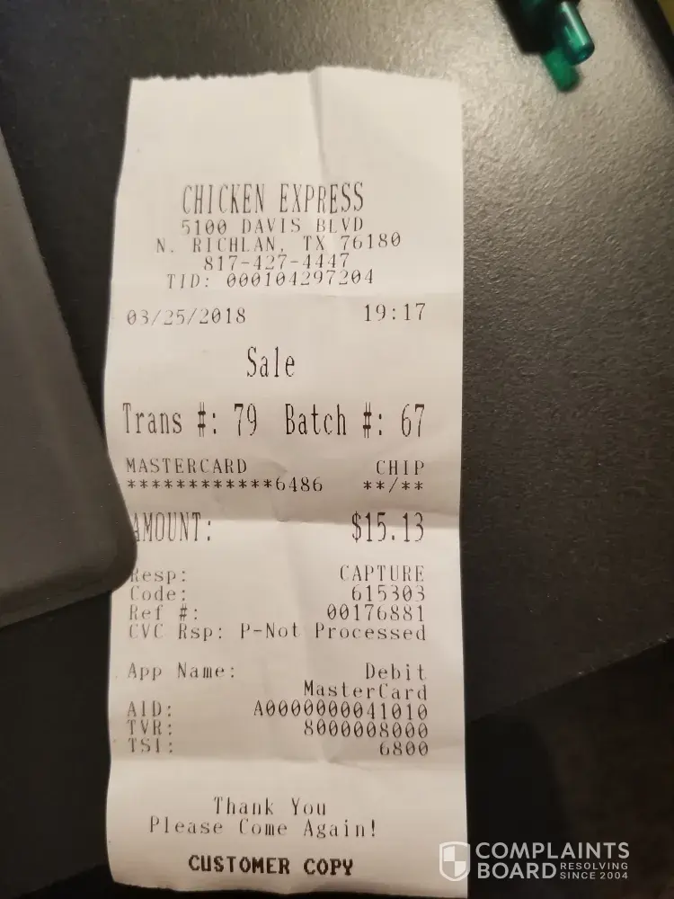 I went to the Chicken Express in Denton off loop 288 and the food was horrible, it wasn't fresh at all. The fries was hard and the strips was dried out and old. I never had this problem before from this location.I called the store and complained about the food and a guy answered the phone and said he was one of the managers. He told me to drive back from Lewisville, Tx back to Denton with the food in order to replace my order. They should have served that kind of food from the start. I faithfully come to that Chicken Express, because my son Plays Football for Ryan High school, and we always send business to this location. My Family feels literally sick from these strips they served us. [protected]@yahoo.com