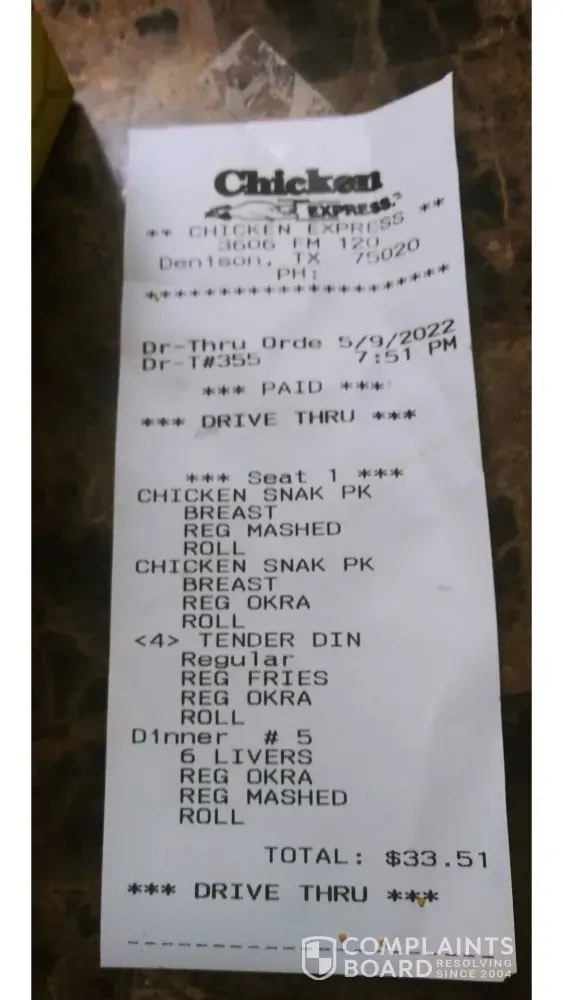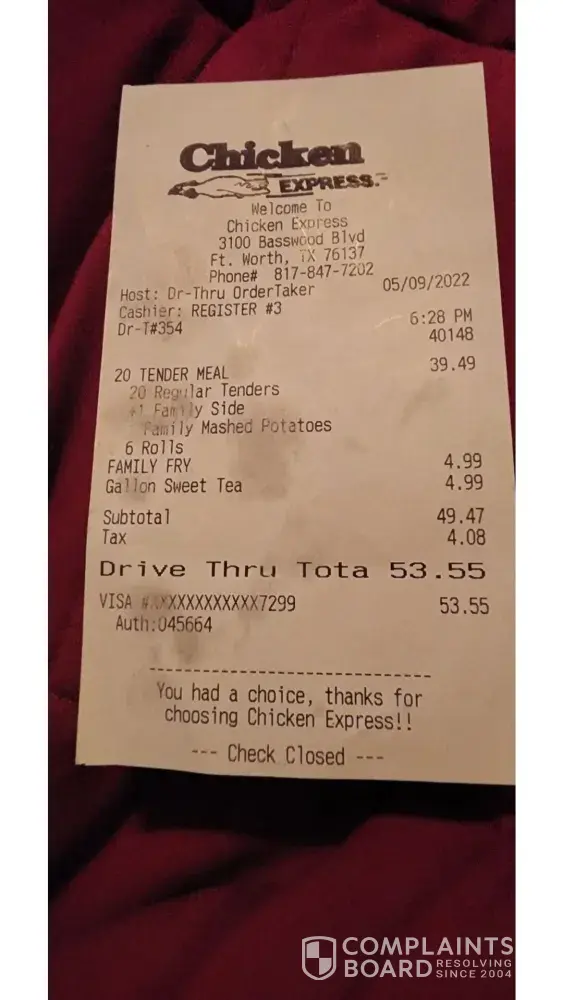 Read full complaint and 1 commentStaff at chicken express