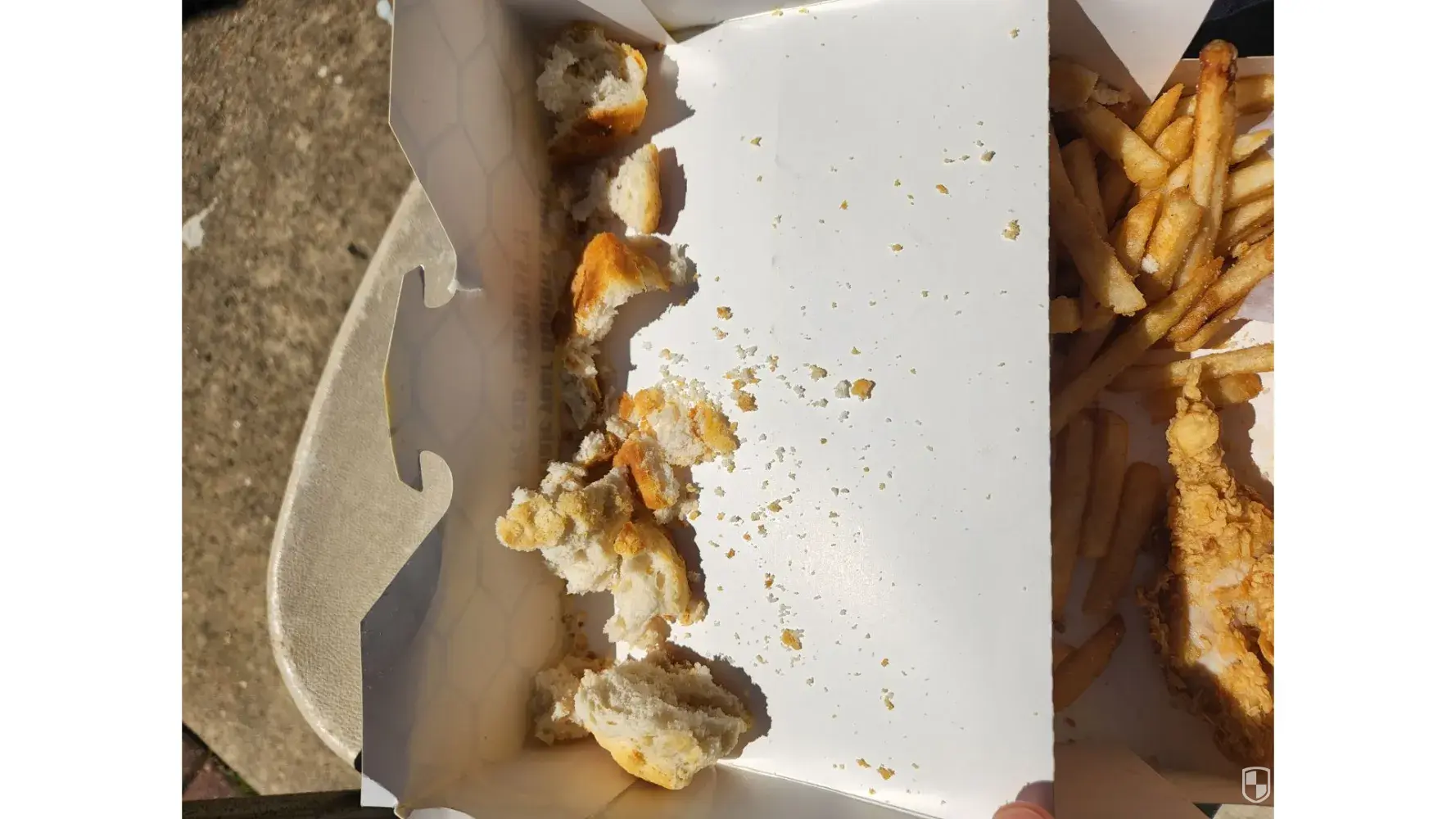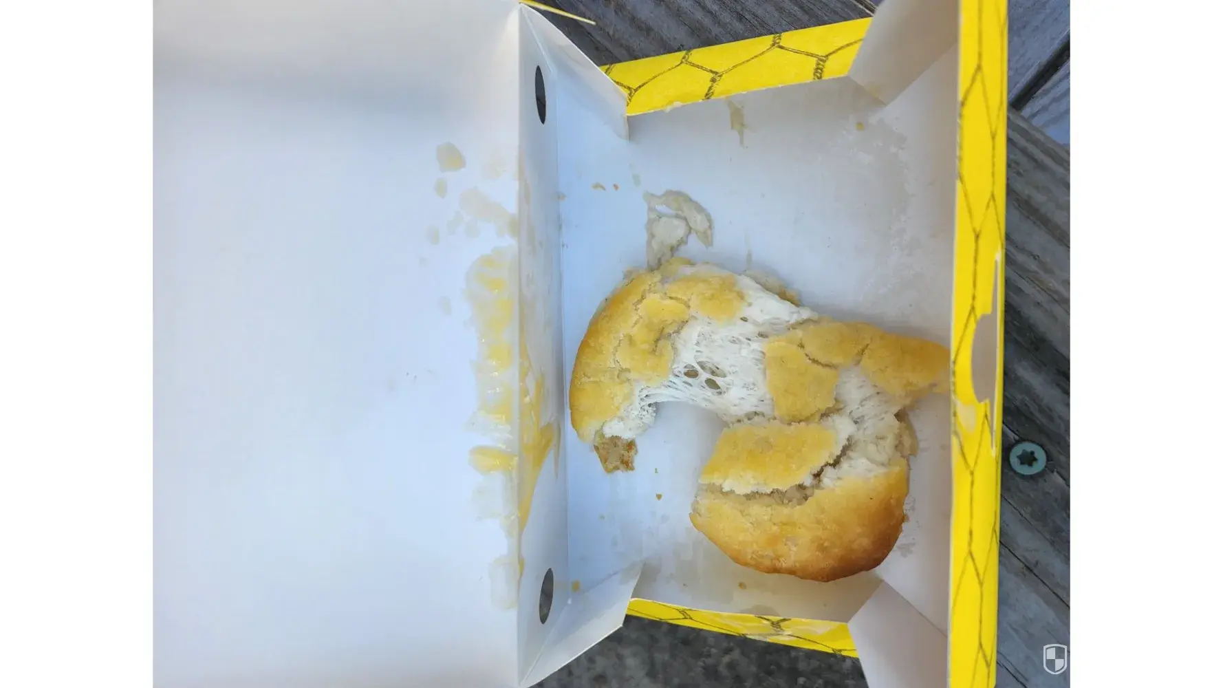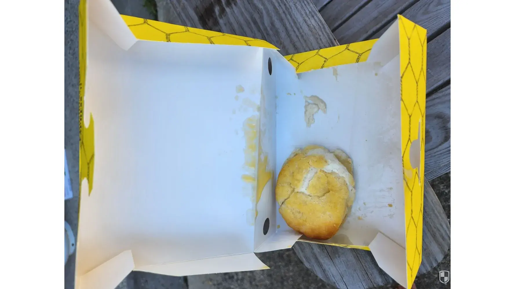 She turns around and yells at another employee, Do we have any biscuits in the oven? She goes, puts a raw biscuit in a Box, and hands it to me. At this point I'm just ready to eat my food so I drive off, that's when I look in the Box and notice that it's raw. Obviously I'm not going to eat it.