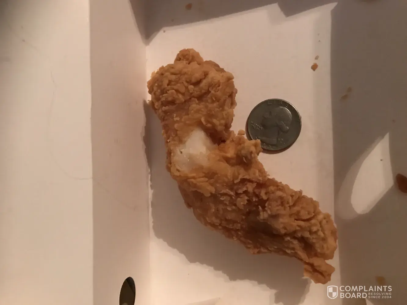 chicken tenders where the size of chicken nuggets. For $21 I will not be coming back if that's how they are doing things. That's the size of a dam kids meal. This needs fixed ASAP all 4 where like that size not worth my money !!! To top it off our food was not very warm and the tea taste like it's been sitting all day. Service was fine food was not !!