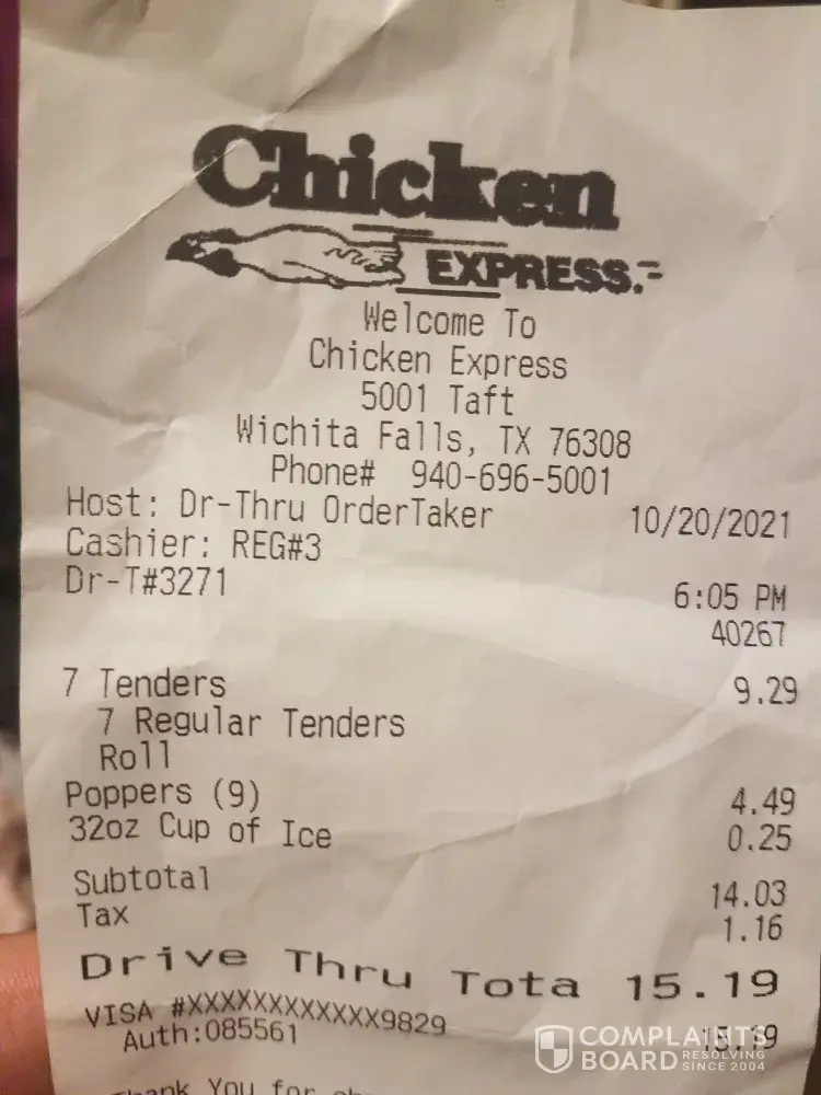 Location at 101 W Wadley in Midland, TX has a poster in the window advertising the Tuesday Tenders ----15 for $12.99 . I was charged $14.99. I called the store to bring it to their attention. The young man who answered the phone wanted to know why I wanted to speak to manager. Something loud was in the background so I was having hard time understanding him. I told him about the misrepresentation of the prices and the poster needed to come down. He offered to refund $ but I was too far away to want to do that. I just told him to take poster down since it is illegal to advertise false prices. Went by late last night and it was still in window. I tried to go to Chicken Express website, it said to go to specific location with complaints but there was NO link to do that. Shady way to circumvent that. This raises warning bells and so I'm doubtful that I'll spend $ with their company again. Step up your game Texas company !