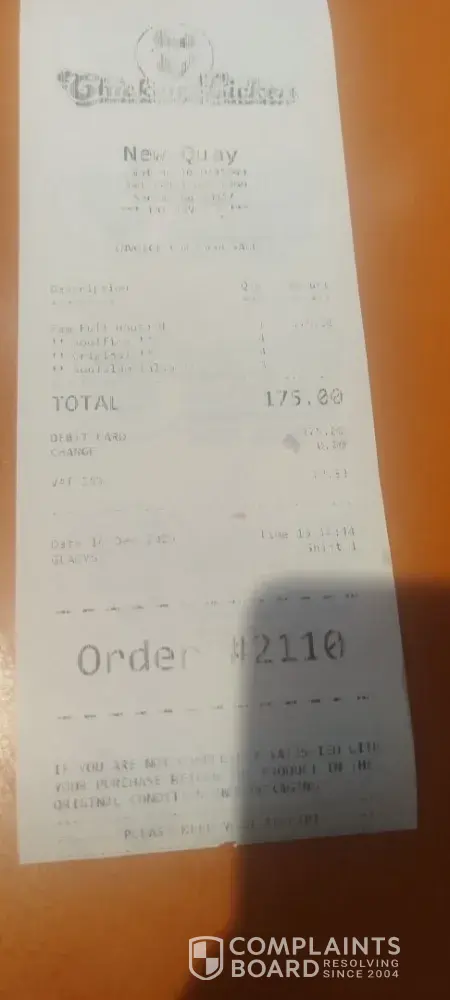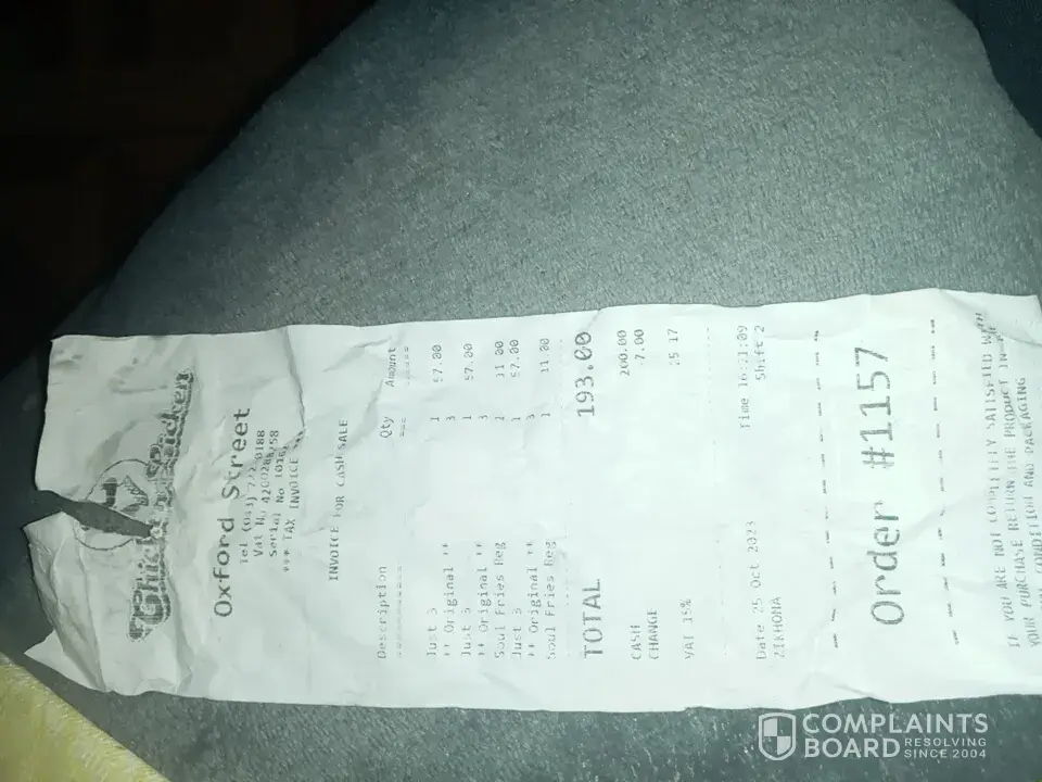 Thank you for taking the time to send your complaint to Chicken Licken Customer Care.