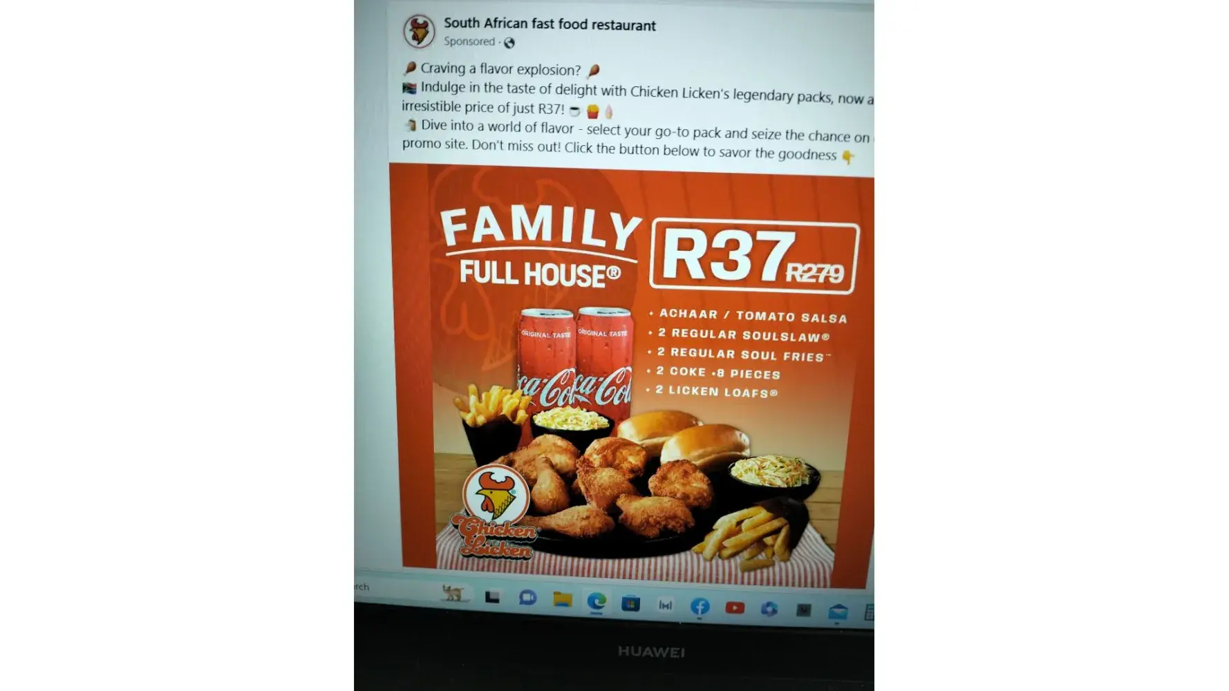 Good day. My complaint is about the Facebook promotion that is running that says we can buy any selected meal at Chicken Licken for R37.00 but it seems like it's a lie we have order but we have not received anything of the order from that promotion. Please do attend to the matter ASAP and fix whoever is scamming people on Facebook using your brand to create account and tell lies on your behalf thank you.
