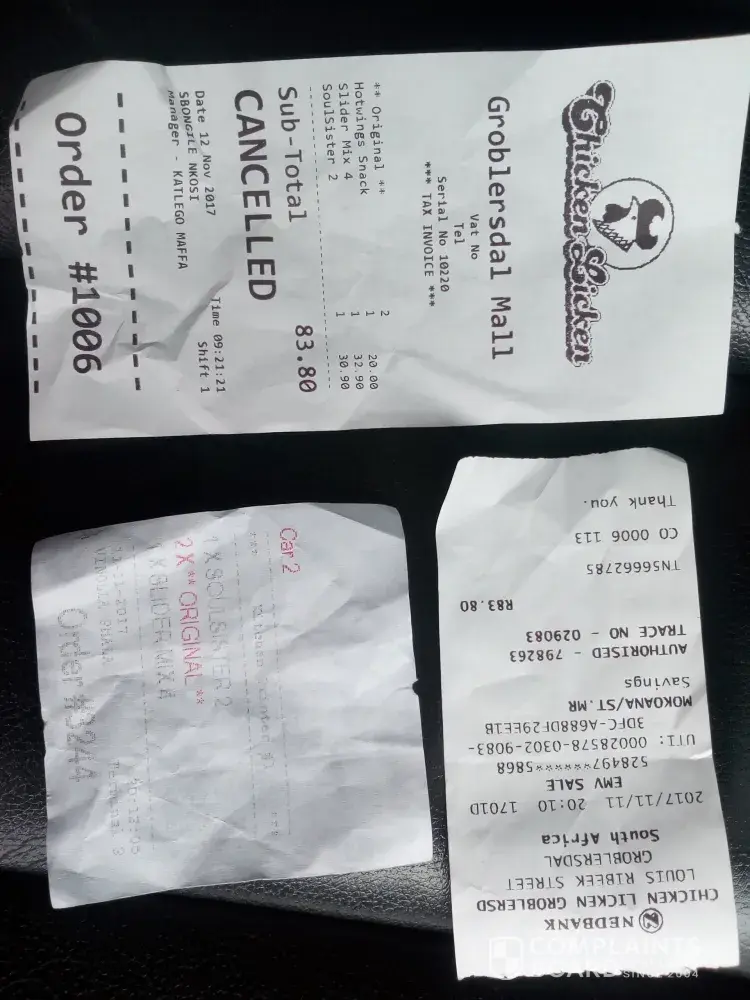 I went to chicken licken groblersdal to buy 3 items(soul sister, slyder & hotwings snack) which they only gave me 2 instead of 3. As I noticed this while at home, the following day I drove to them(+/- 35km single trip) complaining about this. What pissed me off is that they only wanted to give me that item no3 without compensating my transport cost of which they know I bought the food via drive through. How do they expect to replace this without any compensation as I slept hungry? I rejected their offer/apology outright as it's irrational. Thabo [protected] or [protected]@gmail.com .