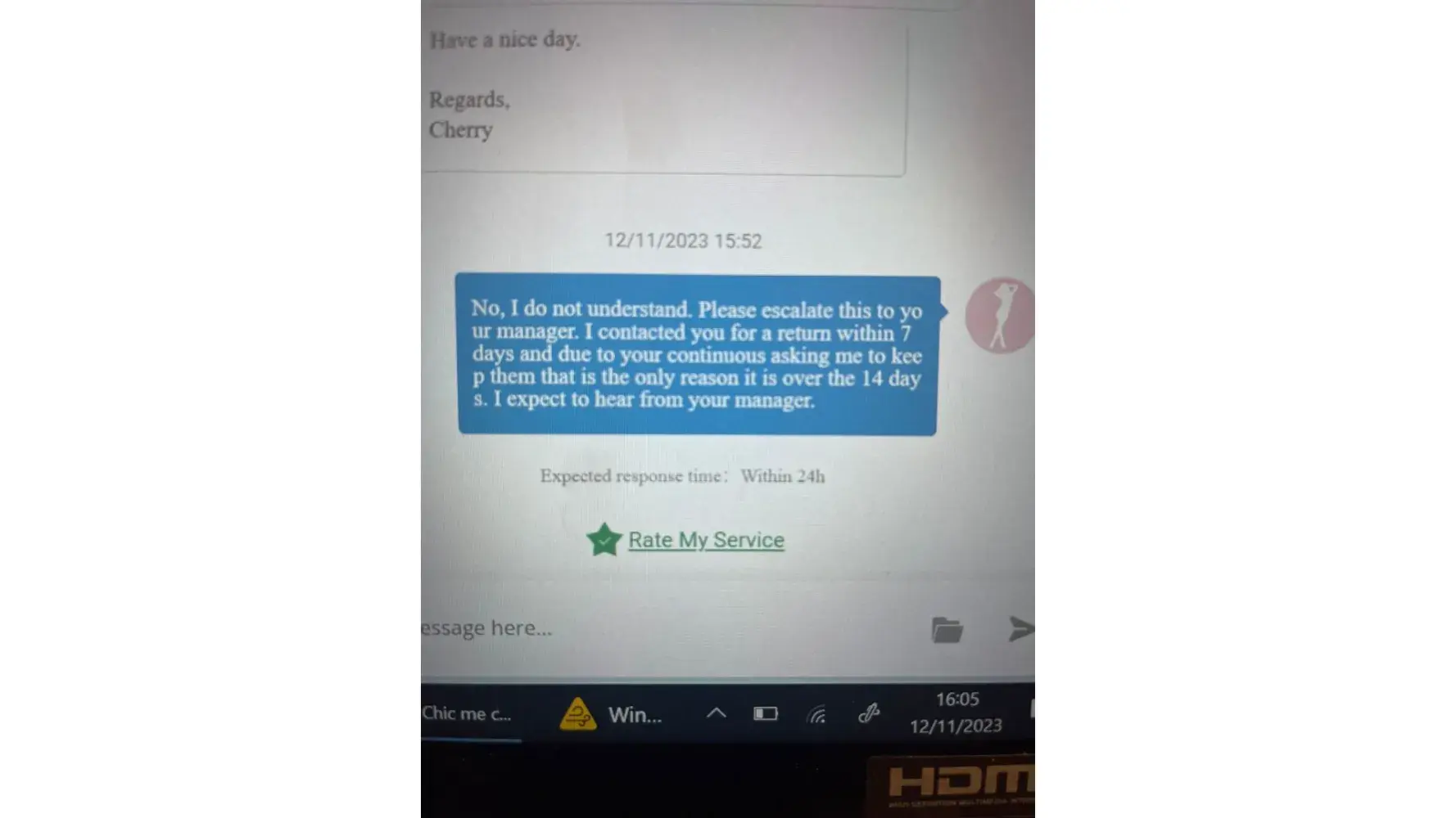 I explained this and asked them to look back on the chat to which they told me I was still out of the 14 days. This is absolutely ridiculous and unfair as I had met the returns window.