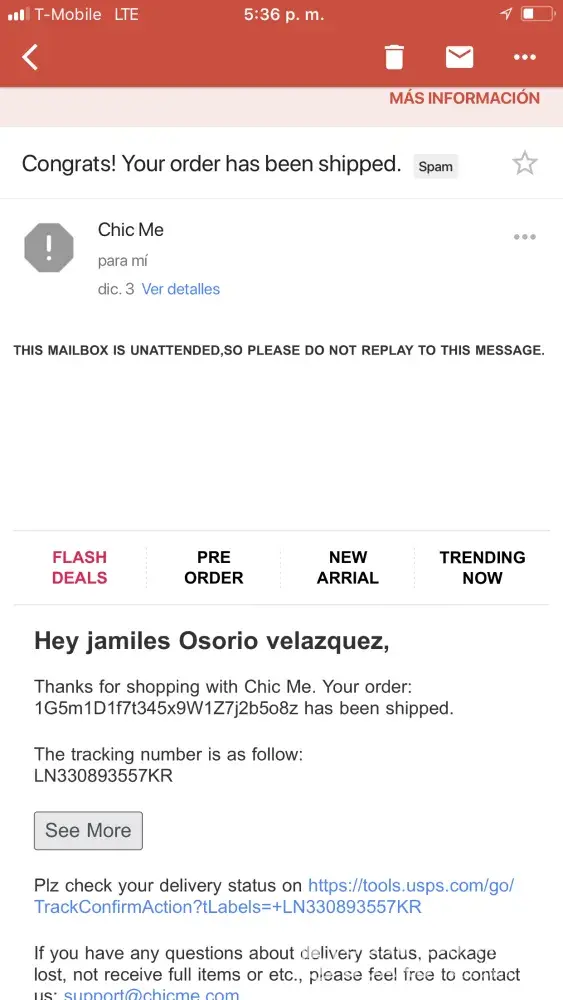 I never received my items the tracking number did not work I just need my items or I will have to call my bank and cancel this order I placed the order almost a month-and-a-half ago and I still haven't got no response like I said the tracking number does not work the phone number on file doesn't work that you guys have the customer service is terrible when ordering from chick me I need some type of response from someone my email is [protected]@gmail.com