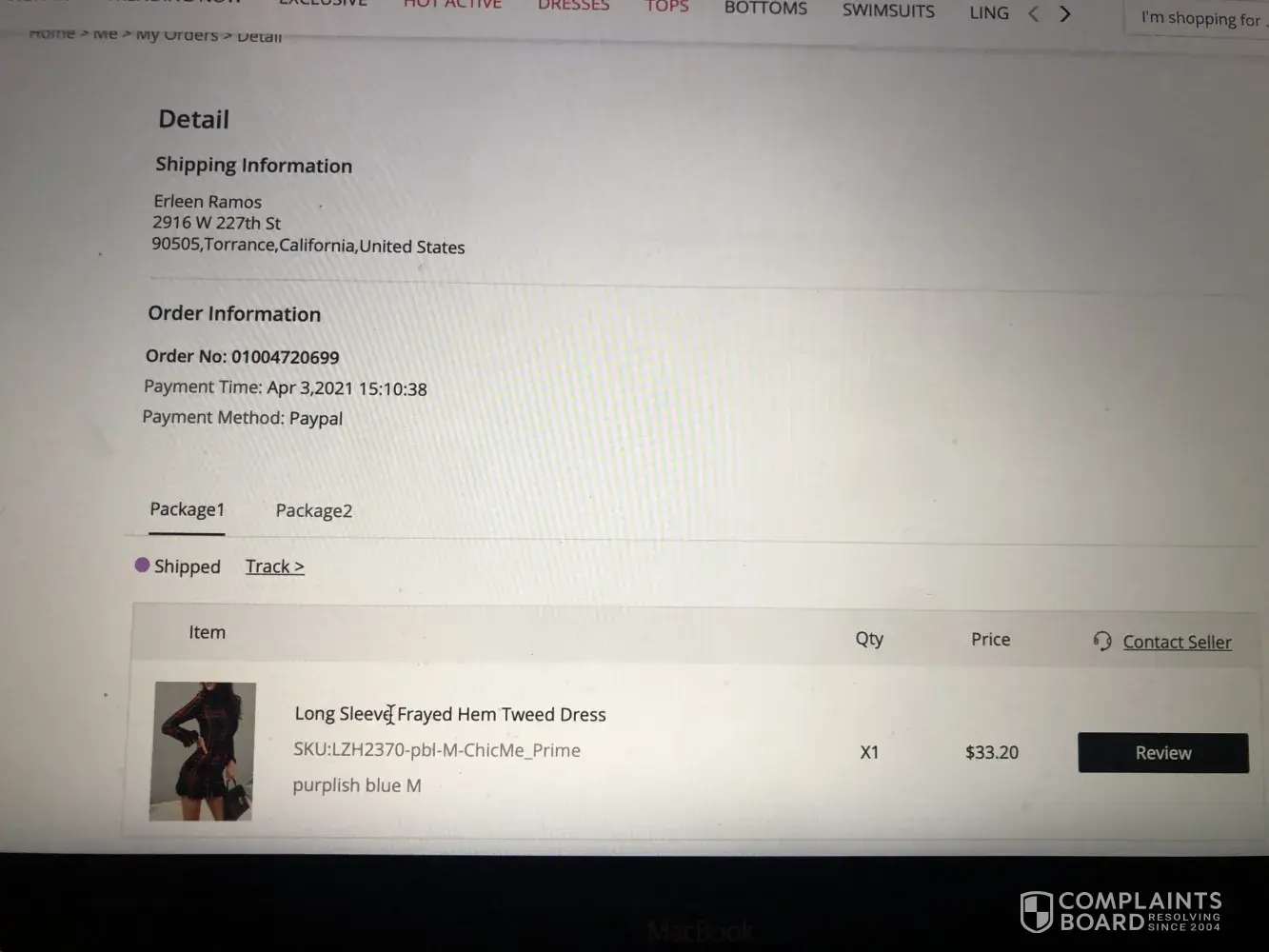 I purchased 18 clothing items from ChicMe and they sent me 1 dress just to show that they have a tracking# so they could commit fraud and Paypal would think they sent me my order. Order was done 04/03/2021 and I have not received the 17 items remaining in order. I have requested that ChicMe refund for the 17 items not received to date. I have included photos to show proof that they have not sent the remaining 17 items, as well as a photo of the small package that shows 18 clothing items could not fit in that small package.