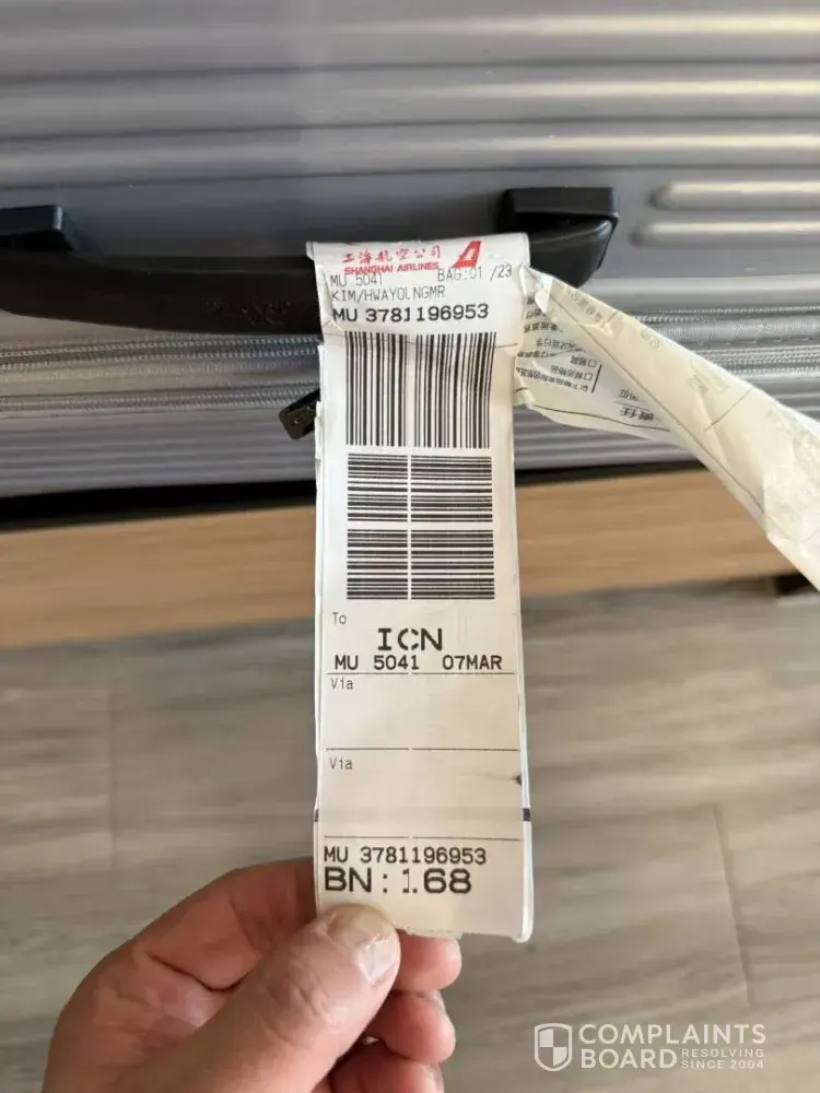 Damaged baggage claim – Flight MU5041 (07 Mar)