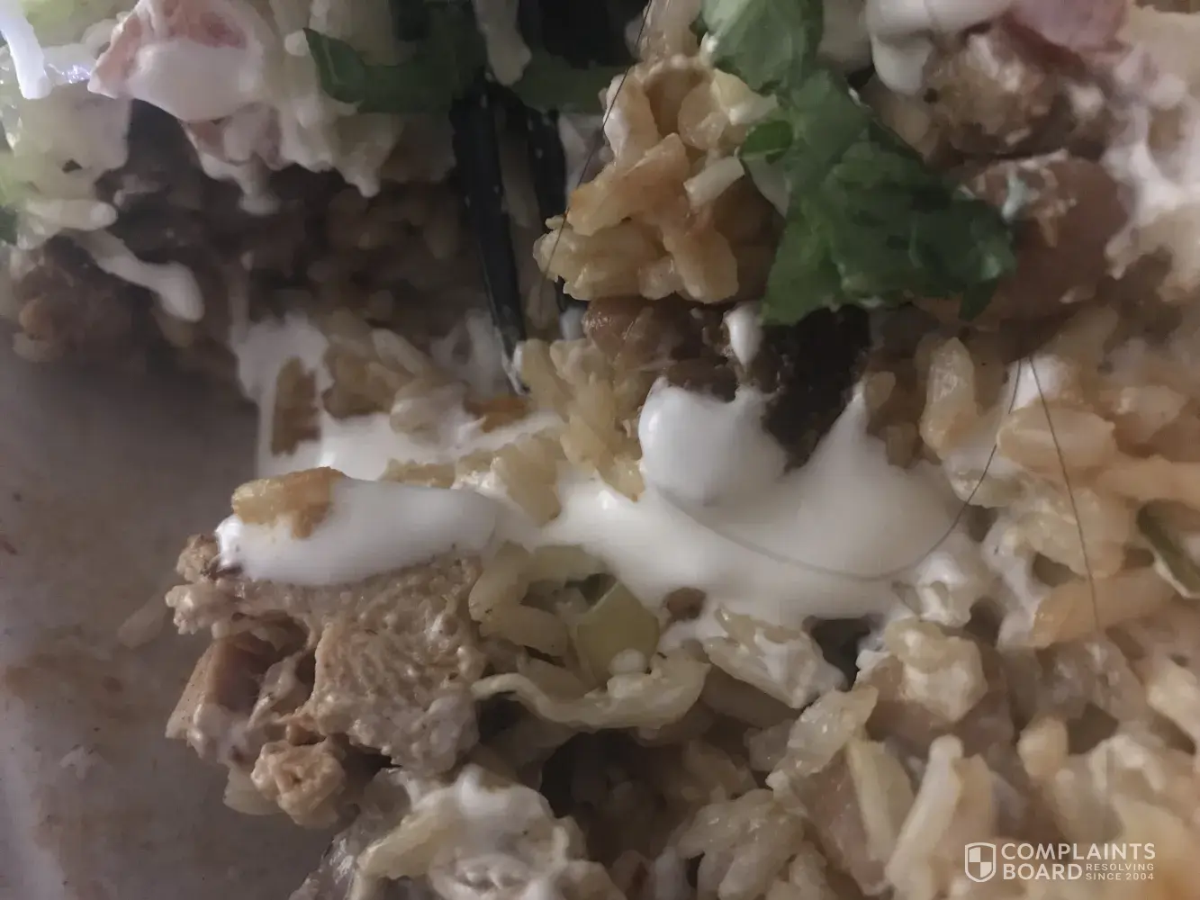 product service I am complaining about my food.