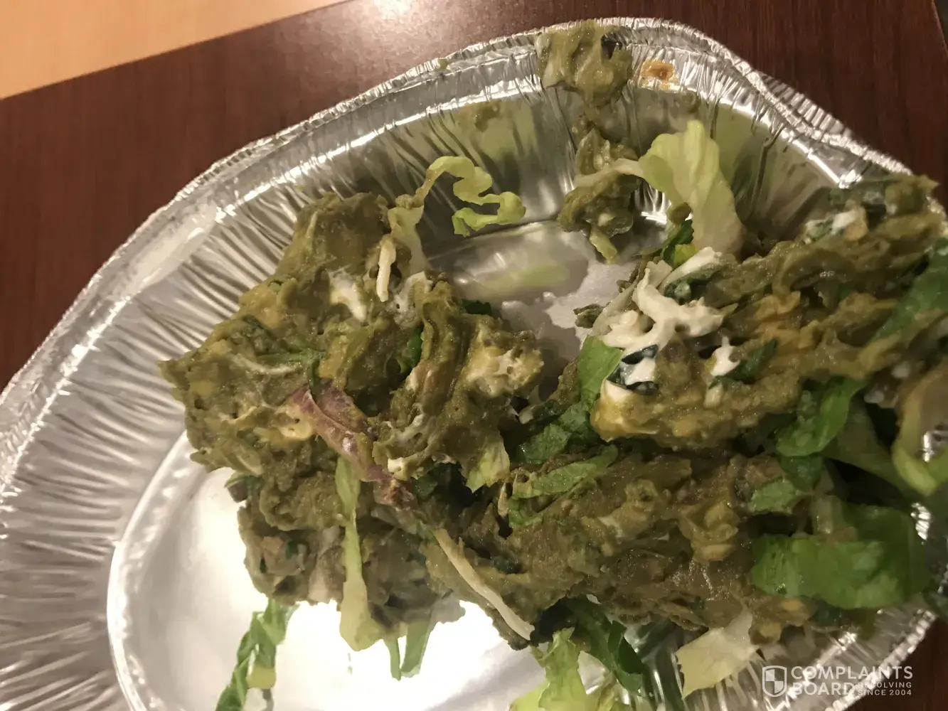 At work we ordered online...I ordered guacamole on my bowl and this is what they thought was appropriate. This is disgusting and needs to be addressed. Chipotle charges extra for the guacamole and I'd like to know who allowed it to be placed on my food and what other patrons have said about it. I would like correspondence about how this is being addressed.