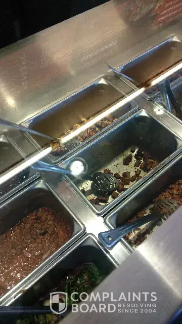 Dehydrating tomatoes in the mild salsa on top of burnt chicken made for quite the unmatchable meal. Unfortunately, in a negative sense. I would have written off the hard rice as just being the unfortunate recipient of the last bottom scraps bit as I worked my way down the line it just seemed to be the standard. I come to Chipotle at least 3 times a week and visit 2 different Orlando locations. At first I noticed the portions take a dramatic dip but if the food quality is the next hit your restaurants take I can assure you I'll be finding another establishment to regular.