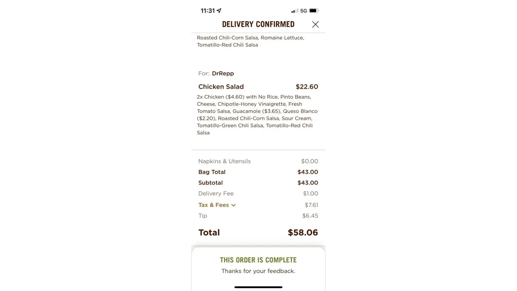 Desired outcome: Not going to lie, I love your food and order from you at least 4 days per week. I won’t complain if you don’t make this right but a nice gift card for $500 would be great.