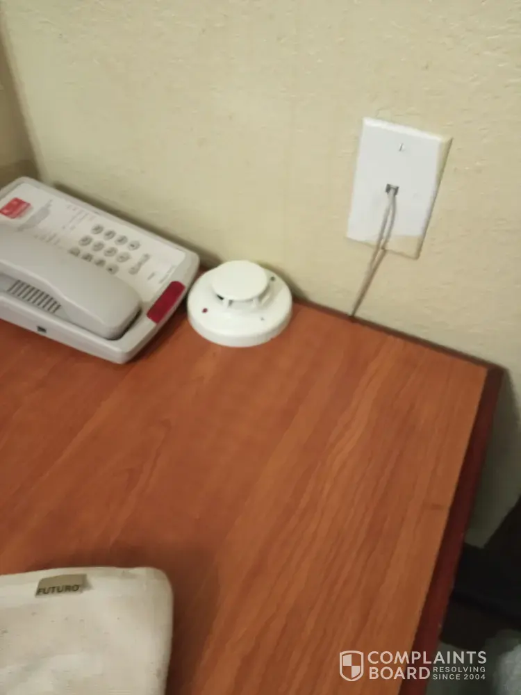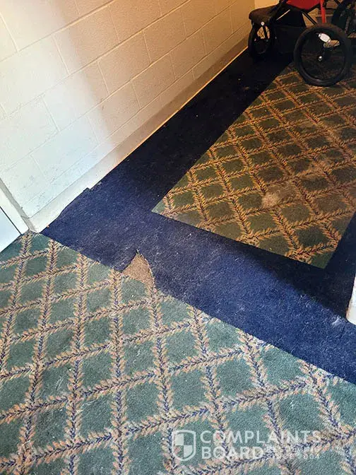 When I returned late Saturday evening, I noted that there was more pet food in the side foyer. I also noted pet hair. When I opened the door to the hallway, I was assaulted with the unmistakable smell of cat urine. Instantly, my throat and eyes began to swell. I had to take medication immediately. I walked through the hotel to the front desk. The desk agent was talking to two men who I assumed were maintenance workers. I complained about the cat issue and how I was assured there were no pets on site. All three employees stared at me blankly and said nothing. Again, the desk agent couldn’t be bothered to stand up to talk to me. The desk agent finally asked the men to check out the smell. I watched them as they walked down the hall and left the area. They had checked nothing. I asked that the floors get swept and that something should get sprayed to get rid of the smell. I went to my room as I thought it would be safe. Many floorboards were broken and tiles lifted up as I walked. As a disabled person, it is fortunate that I did not fall. The AC unit in my room was ineffective. I carry a fan when I travel so I was able to spray the entrance way and air out the room so I could sleep.
