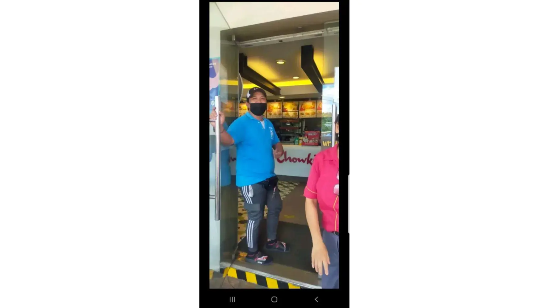 This pertain to a certain guy wearing blue shirt approching me not allowed my kid, my wife and the undersigned to enter inside the chowking store to take lunch meal this afternoon at on or about 1pm today june 17, 2022 at chowking cogeo branch. This incident started arguing me by that said guy regarding my parking to direct me to park at stor parking which is my lowered vios car is not able park on the said parking.