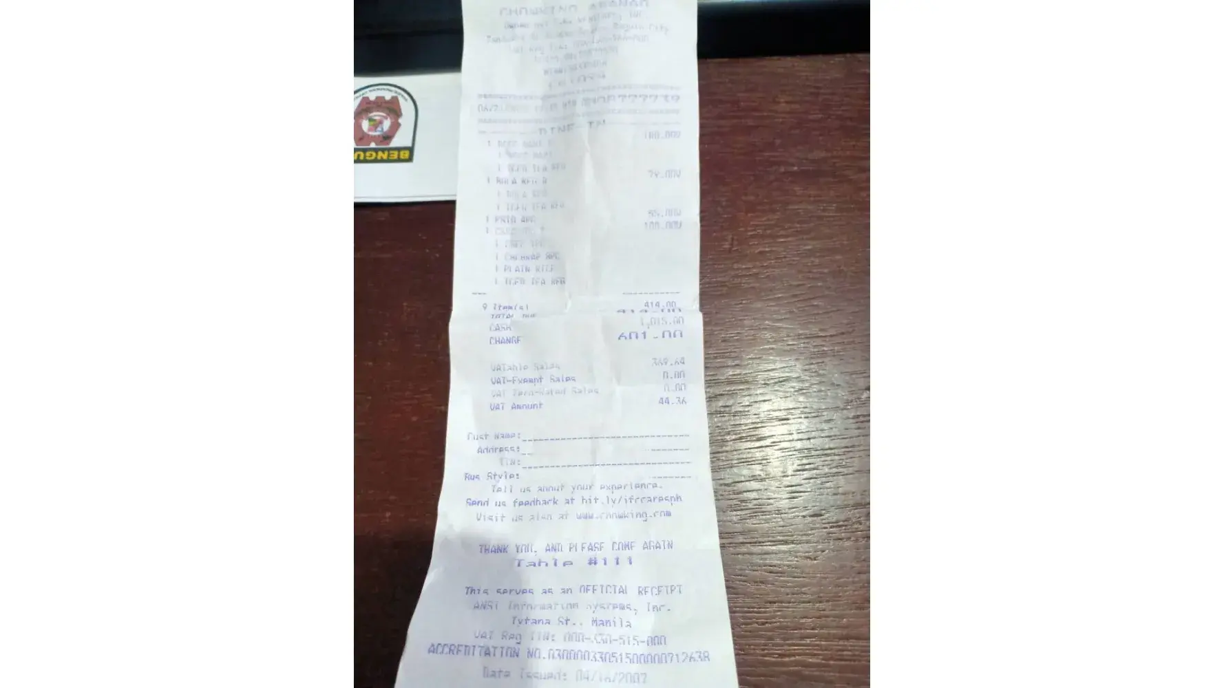 Me and 5yr old my daughter have order tbe following at chowking megamall 1 wanton reg 1chicharap 1 butchi platter ( my daughter favorite) 2 BCF top All for to go or take out OR#[protected] Just to be disappointed cause when we arrived home our take out food is incomplete. The Butchi platter was not included in our take out food. Nagbayad lang ako sa wala. Ck1716 yung nakalagay sa Receipt