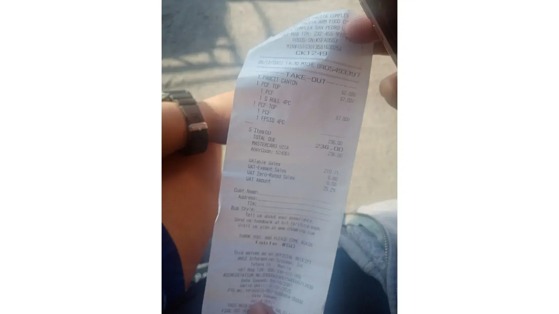 They want to charge extra 5 pesos for cups that are for take out. My grandmother was disappointed with this since she didn’t order drinks with it since she has diabetes and wants water and ice only. But they wanted to charge extra 5 pesos each