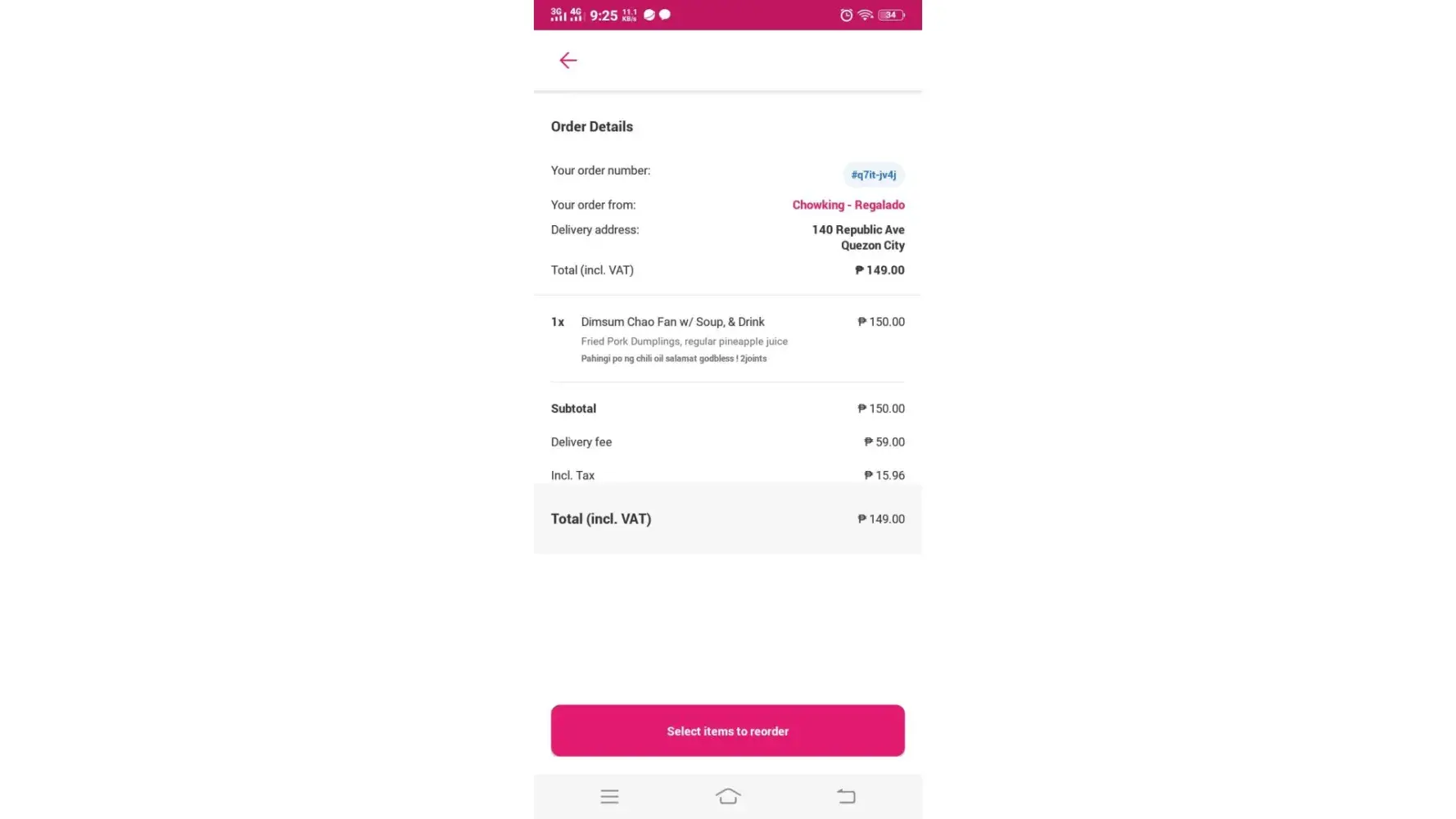 Kaka order ko lang kanina sa chowking regalado thru food panda umorder ako ng pork chowpan with fried dumplings and wanton soup ang dumating sakin porkchowpan with fried somai tsaka walang lasang wanton soup , parang pinakuluan lang na tubig na may gulay at wanton balls ! Hayyyys kadismaya naman ang aga aga ! Sayang yong pera ! paayos nalang ng serbisyo nyo ! tsaka nag speacial instruction pa ako na pahinging chili oil ! Sana ininform ako ng crew na walang chili oil or may bayad para di ko na tinuloy order ko ! umay sa inyo !