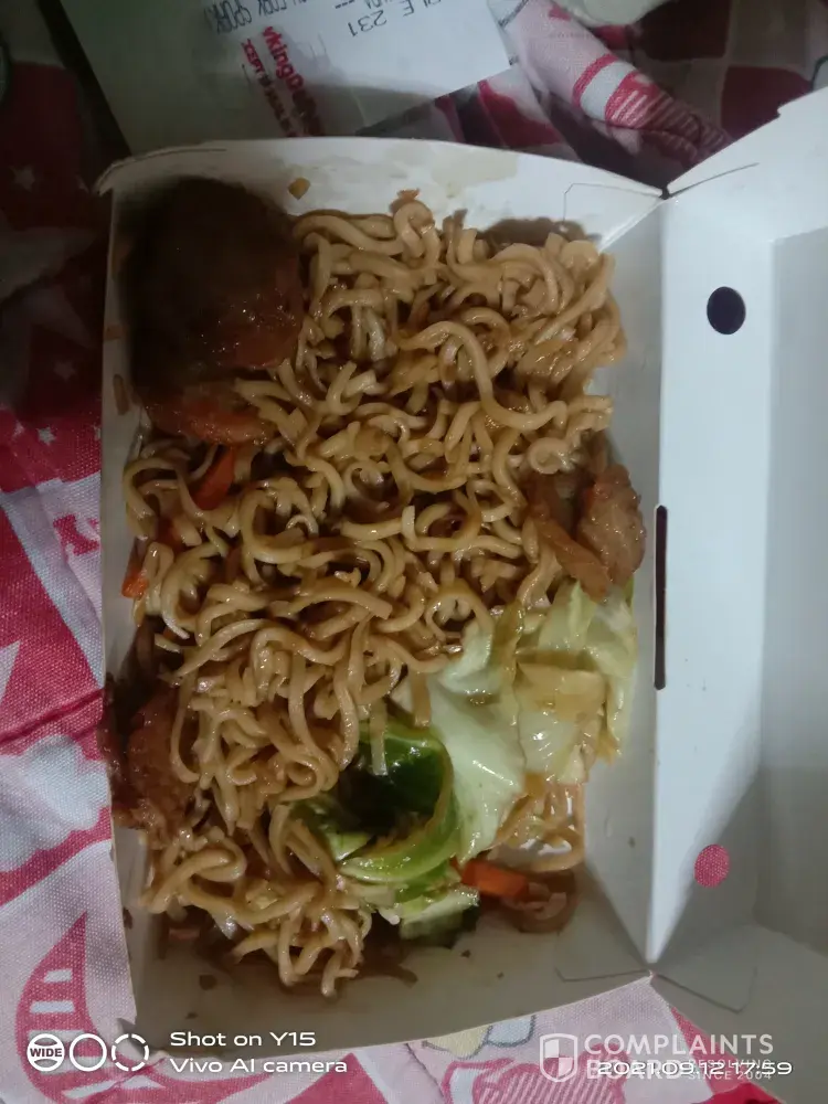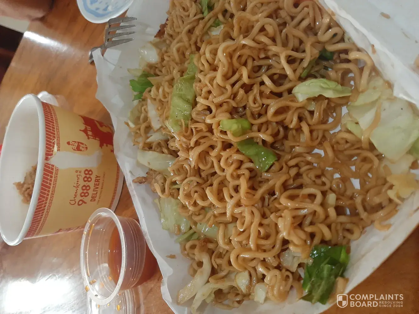 The pancit canton noodles used were instant noodles from canton packets hence the curly texture which is VERY different from the usual pancit canton noodles from Chowking. This is not worth what i paid for and is very different from usual pancit canton that we order. Attached are photos for reference in which you can see the short and curly strands which is not how it should be.