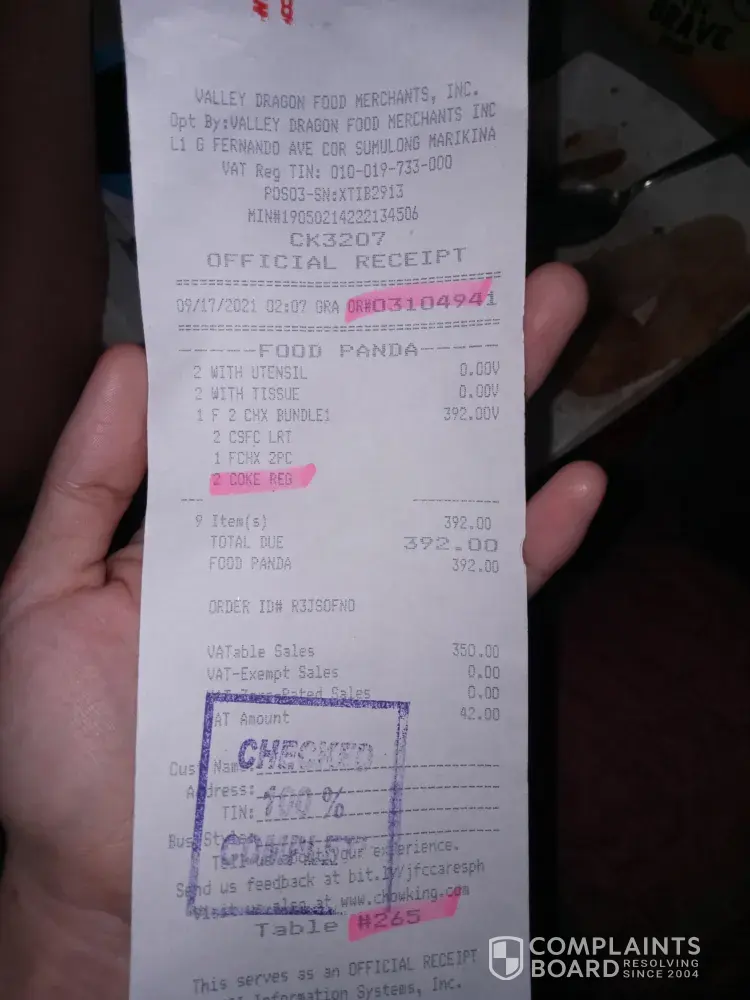 nagorder kami sa chowking pacita thru foodpanda, nagrequest kami for condiments (chili garlic, toyomansi, spoon and fork) walang dumating. tapos ung siopao walang sauce... ung tofu ang messy ng packaging. ndi na sana kami magccomplaint kasi napakasimpleng bagay lng naman.. pero 2nd time na kasi nanyare 'to.. ganyan ba tlga ang service? kasi sa foodpanda kami nagoorder? nakakadissapoint lang... ndi ako magccomplaint para sa kahit anu.. i just want you to be aware .. thank you...
