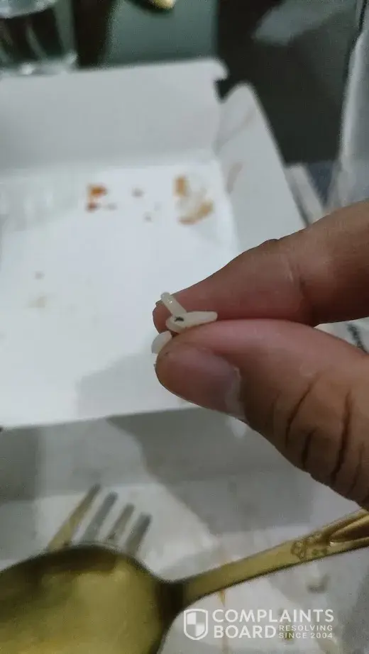 Meron pong screw yung manok ninyo! May halo siyang breeding kaya hindi gaano kahalata! Muntikan ko na po makain kanina! Bakit naman po ganun? Paano kung gutom na gutom ako at hindi namalayan? Paano po kung sa bata ito napunta? Edi baka nalunok na? Siyempre pagkain po itong services ninyo kaya isang kagat lang nasa stomach na namin ang luto ninyo and puwede ito makaapekto sa health! Hindi po ako papayag nang ganito! Ayokong maulit! Sana po mabigyan ng LESSON ang mismong branch nito! Hindie ko pa po inaaupload sa FB itong picture, dahil ayoko pong masiraan ang company ninyo😠dahil mahal na mahal ko talaga ang chowking kaya nga mismong birthday ng ate ko ay ito ang pina-order ko. Pero malaking dissapointment po ang nangyari. Sana po mabigyan kaagad ng AKSYON.