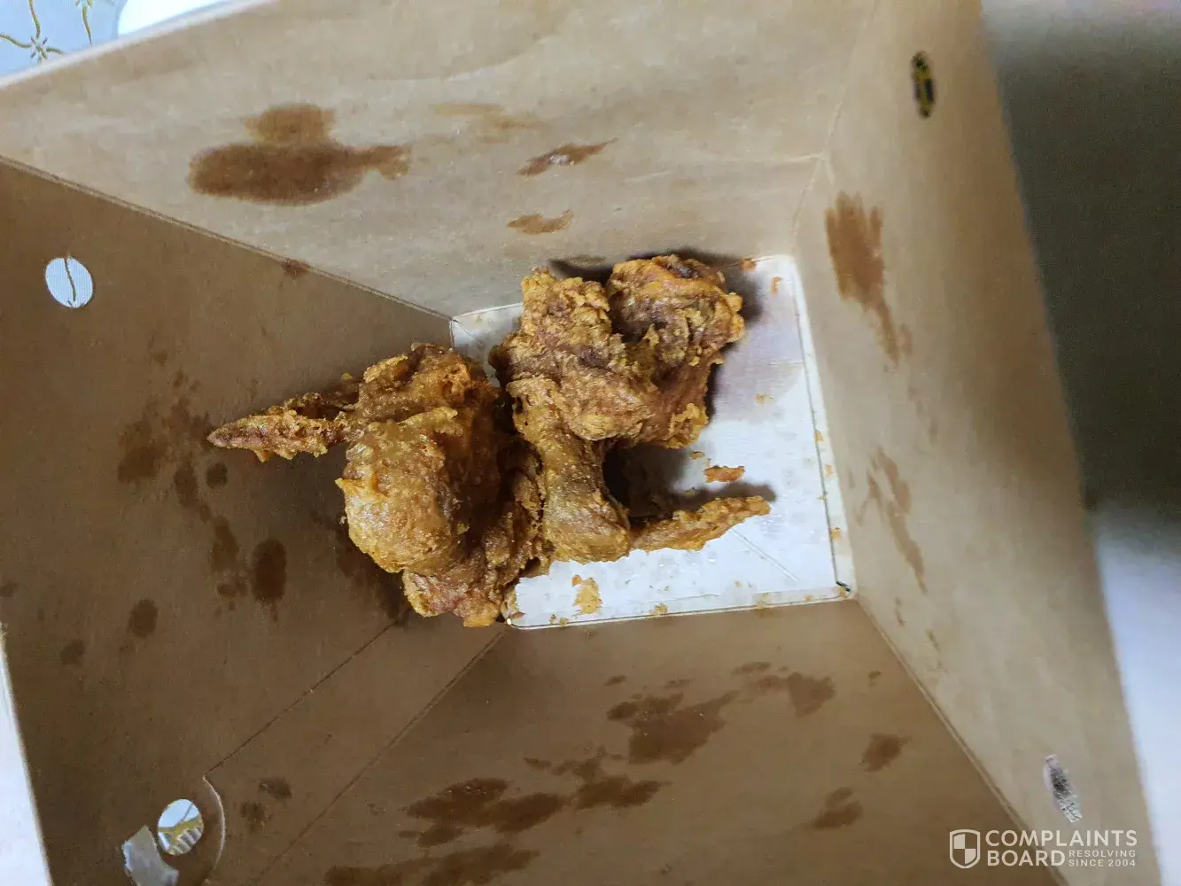 There are blue stuff together with the food. This could be poison or plastic! We only saw it when we were almost finished eating since the stuff were stuck to the cardboard box!