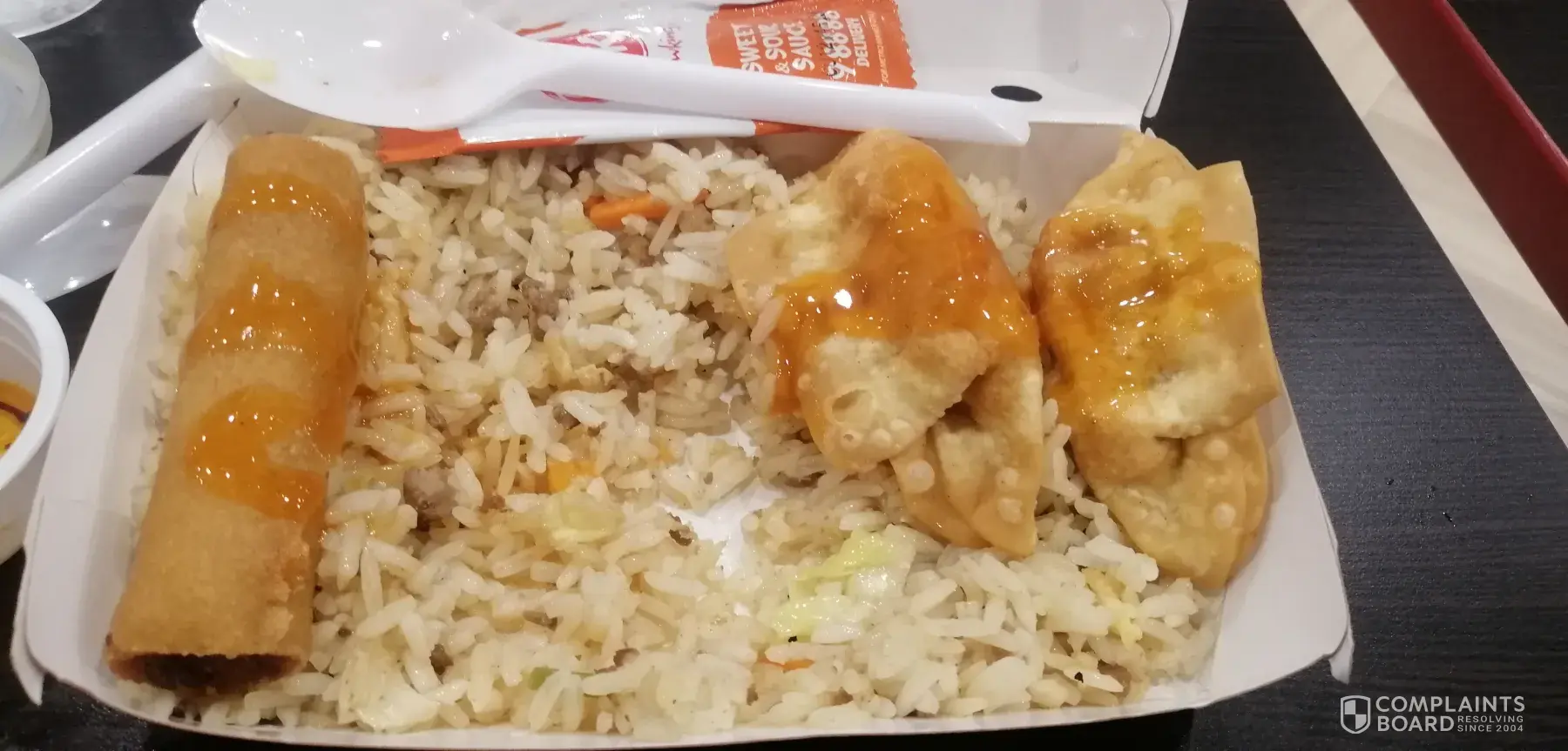 Bumili ako chaofan sa chowking Rob. Palapala July [protected]@0640 pm, nkauwi ako 0750 pm paguwi ko agad nming kakainin ung chaofan. Tpos sbi ng asawa ko pgsalin sa plato prang panid dhil mlgkit at pawis dhil pag nabili ako chaofan pagsinalin s Plato buhaghag. Sabi ko Hindi naman tpos binuklat nmin at may laway na dikit n ung kanin kya dna kinain. Kya ayun pkain nlng sa aso.