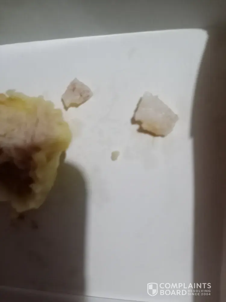 Im complaining the siomai with chowpan that served for take out while eating in the midddle of the siomai when i bite it there is a hard and look plastic and it looks a piece of teeth so disappointed while eating and when i cut another side i encounter another pcs that u cant explain why there is a thing like that! I loss my apettite to eat my food i ordered i considered chowking siomai is one of my favorite but now sad to say if still safe serving a food with that kind of thing. I take picture on this as proof. Hoping to improve your standard and awareness of the food that serve to the people since we need to take care of our health we need to be carefull and more standard for preparing .