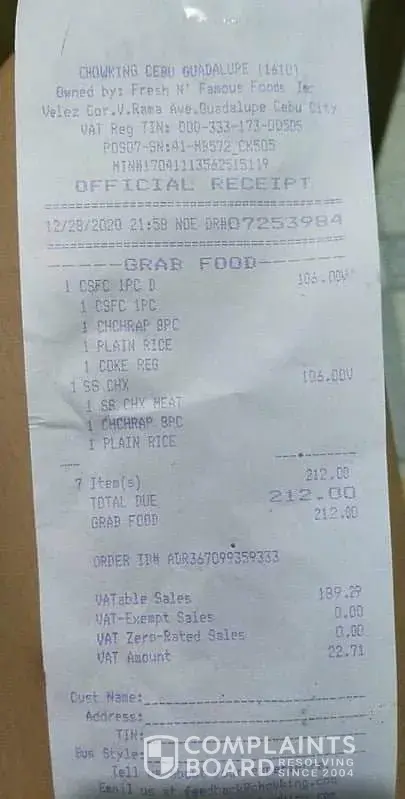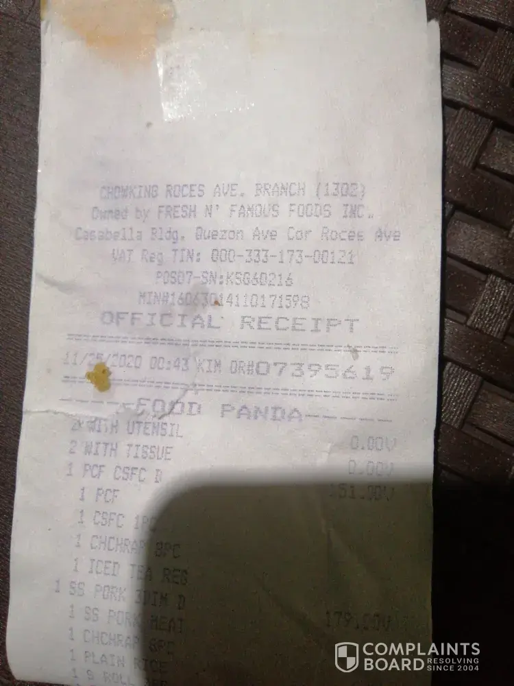 I order today and it was delivered fine, however, no free chicken in my chicken lauriat order. You are advertising free chicken when you order chicken lauriat including delivery but I did not receive any free chicken! So disappointing! I cannot imagine why they forget my free chicken even though I ordered chicken lauriat. Did they forgot that chowking have a promotion? Regardless, this is not chowking works and I will not order from chowking moving forward!