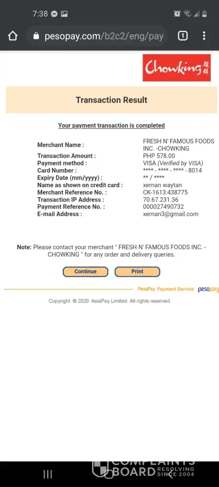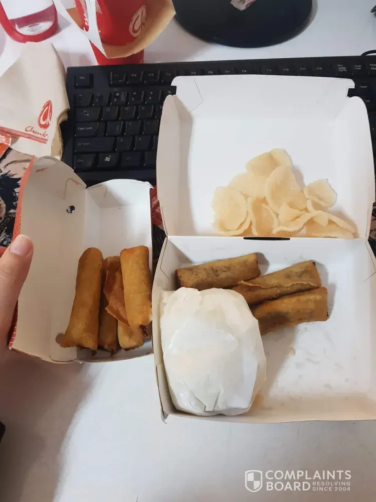 I ordered kangkong, chicharap, chowfan and wonton soup. But the guy delivered it without the soup on it. Chowking avenida recto