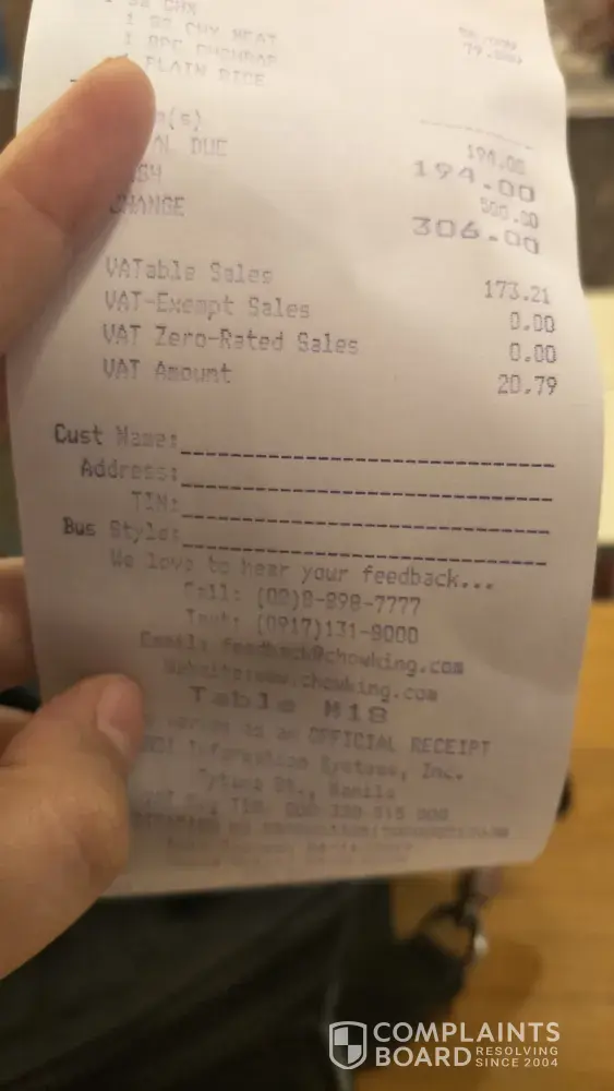 After 15 mins., we followed up on our order. As we look around the dining area, we noticed everyone already has orders and we tried recalling that these people ordered right after us so we are wondering why our order is still not given.
