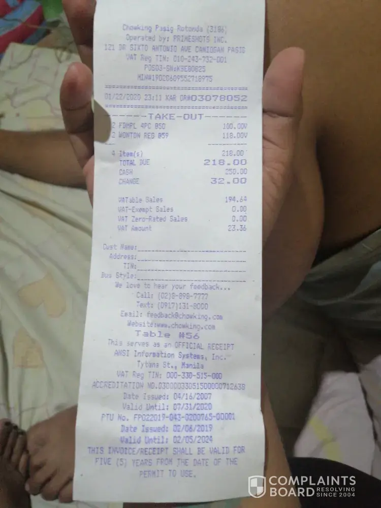 I want to share my feedback to your store chowking rotonda pasig palagi na lang sa tuwing mag ttake out kami wala laging condiments or sauce lagi na lang kulang madalas kami nag take out ng food every night pero same palaging may kulang pero this time may kulang na nga di pa maganda asal ng crew ninyo pinapalagpas lang namin pero this time sobra na sana ma...