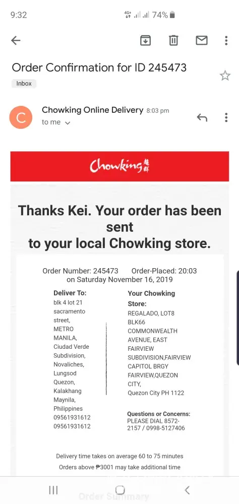 I ordered Chowking for delivery because I am a PWD and a solo parent too. I do not feel comfortable leaving my two kids at night just to get Chowking food.