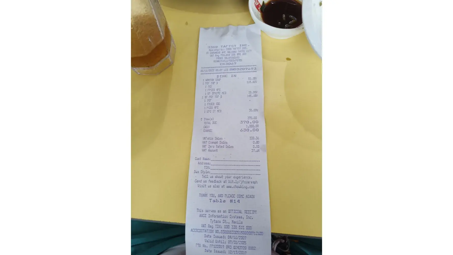 Nagdine kami ng kapatid ko, we're both seniors. We ordered 2 sweet n sour fish fillet, with iced tea and yung rice upgraded to eggrice pareho at 2 sml halo- halo. The total was 548. How come ang sales senior citizen is 365 lang? It should be 548 then less 12% vat, then less senior discount diba? Ngayon ko lng nakita sa bahay when i cheched the receipt. Can you please check on this? I need feed back from your office.