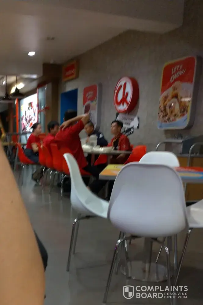I am a regular customer at Chowking Bacolod and I work in a BPO company. I usually take my lunch between the hours of 2AM and 4AM. At least once a week, I have observed that there will be times that there are no crews at the counter and no guard outside because all of them are having a meal together. I can send pictures as necessary. Not only does this represent poor customer service but also a safety hazard as there is no guard on his post.