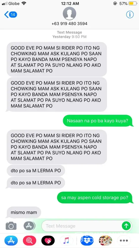 Hello, I am concern about one of the delivery guys who delivered my food earlier (Dec 12, Wed) at 9:30-9:50 pm in front of our apartment. He asked if he could escort me back in our floor but I politely declined. At 11:55 pm, he reached out through my contact number which is kind of invading my privacy since my number is supposed to be confidential and not used for any other purposes. I am also concern with my own safety since he already knew where I live and this was the first and will be the last time that I would encounter anything like this. The contact number of the said delivery guy is [protected].