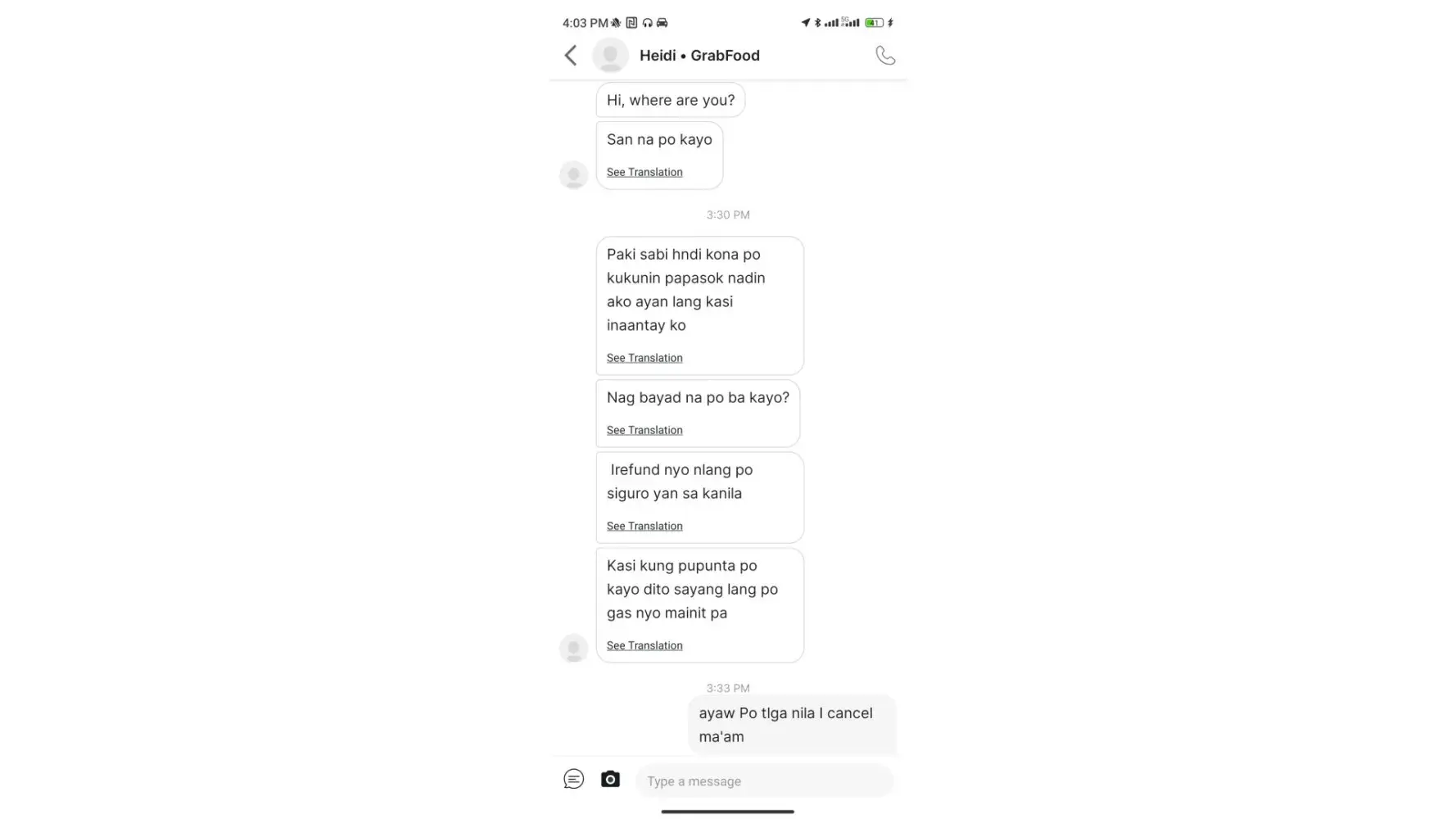 I would like an apology from the Manager. Kasi andon lang siya sa loob to approach me directly na sana na kasalanan niya talaga. Manager na siya niyan to think. Pero di niya nagawa ng ayos ang trabaho na hindi naman nya dapat kunin kasi andon si cashier mismo. Then 2x na approach. Impossible naman na Nalimutan.
