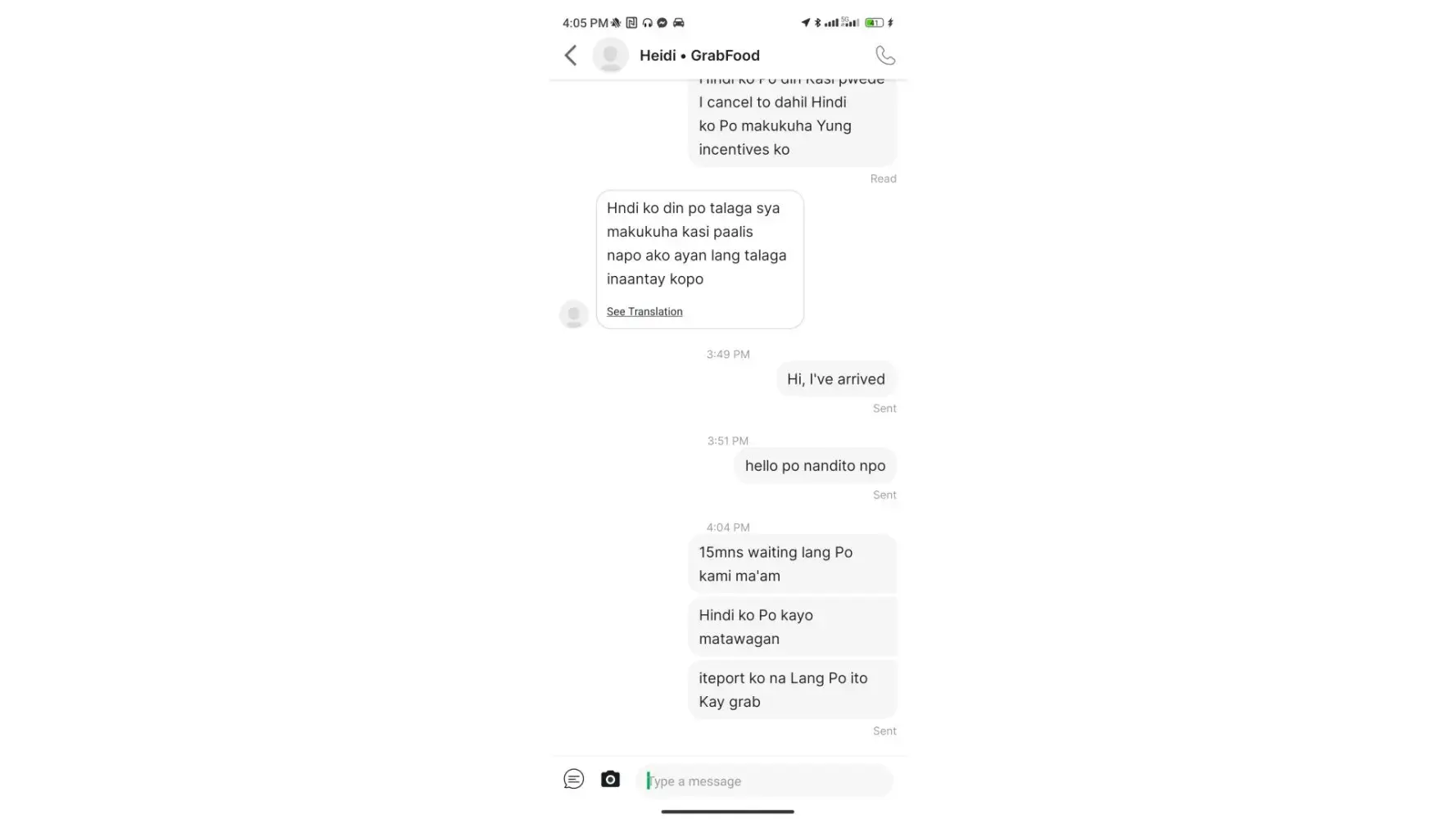 Grabfood rider Po Ako. Bali 50 mins po akong nag hintay para makuha Yung pagkain. Tas nag follow up Po Yung costumer ayaw Po nilang intindihin. Hindi napo tuloy kinuha ni costumer Yung pag kain dahil sa sobrang tagal. Tas pinaglitan pa Po kaming mga rider Ng manager at sinabihan na wag daw turuan mag report Ang costumer. Hayaan daw kung gusto nyang I cancel oh Hindi. Bilang grabfood rider Po aksyunan nyo Po sana Yung store na ya. Dahil napapahiya Tayo Kay costumer. ngayon Po nandito sakin Ang pagkain. Wala Ng kumuha dahil sa tagal nila. Wala nmn pong masyadong costumer nun. Mag rereport din Po Pala Yung costumer dahil nagagalit Po saknila